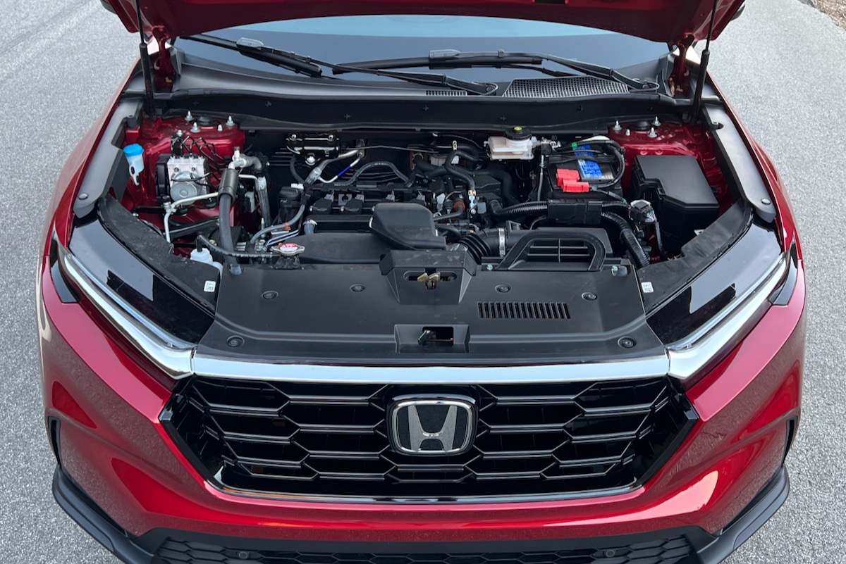 For the 2023 model year, the CR-V gas-only models get the same turbocharged 1.5-litre turbocharged four-cylinder engine, which carries over from the previous-generation CR-V. It generates power specs of 190 horsepower at 6,000 rpm and 179 lb-ft of torque between 1,700 rpm and 5,000 rpm, which is plenty for a compact SUV.