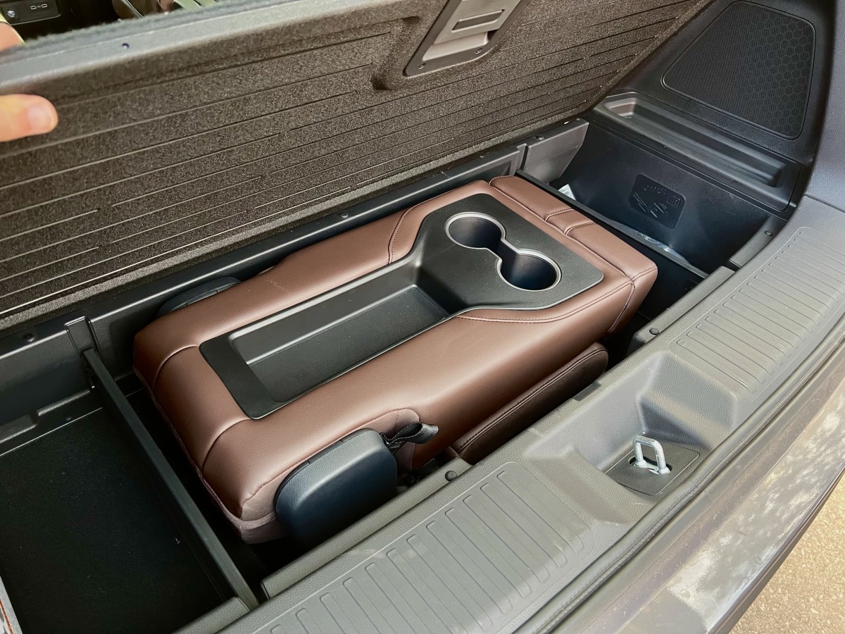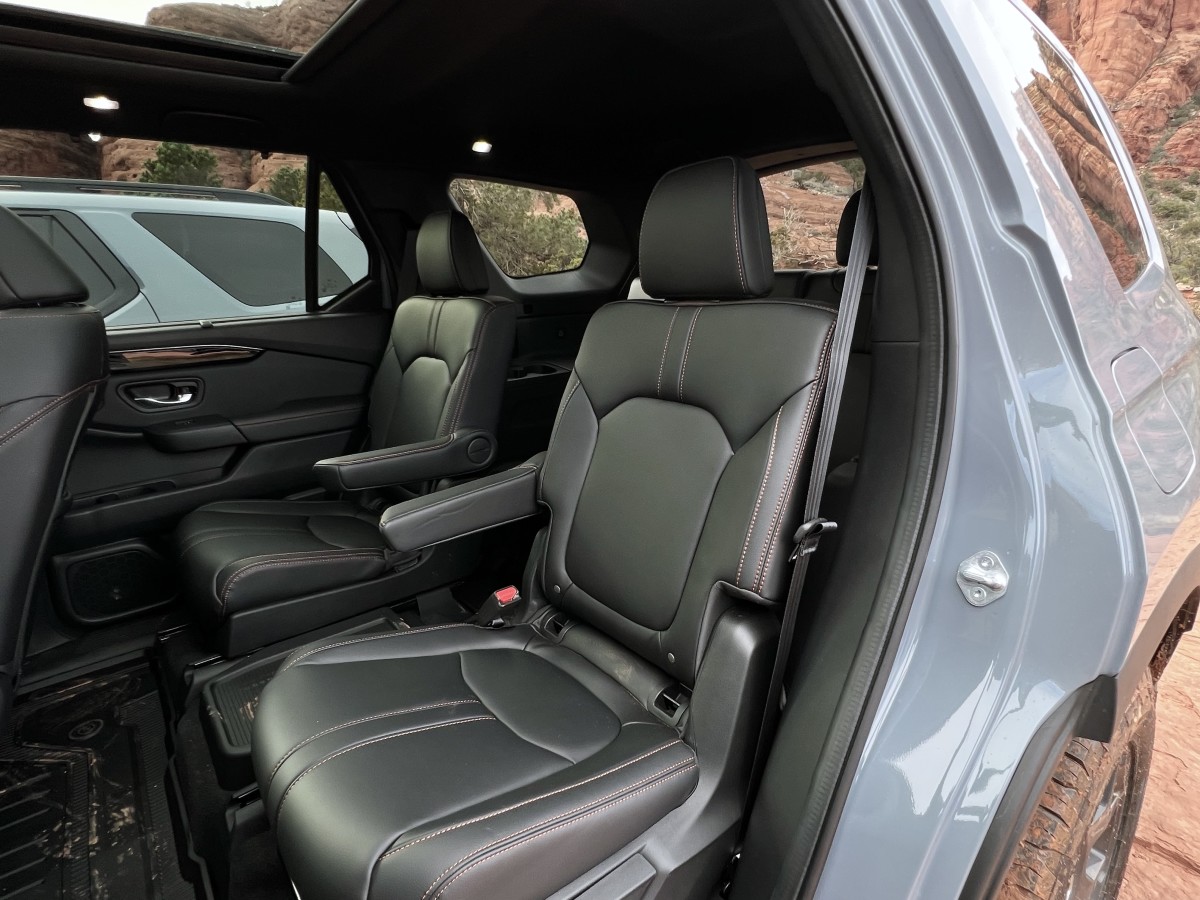 The real star of the show is the Pilot's stowable second-row centre seat, though. With a tug of a strap and a lift from the back edge, the folded centre seat can be removed to provide a useful centre pass-through for third-row passengers, reducing passenger seating to 7. That's particularly helpful if you have a child seat installed in one of the outboard seats. Even better, you probably won't be left without that middle seat when you need it, as it fits under the cargo floor.