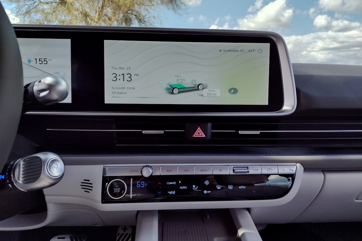Like other recent Hyundai infotainment systems, the Ioniq 6's interface offers pleasing graphics and a sensible layout. However, the voice-recognition system in our test car had trouble interpreting certain commands, such as changing the temperature or finding a certain genre of music on SiriusXM satellite radio.