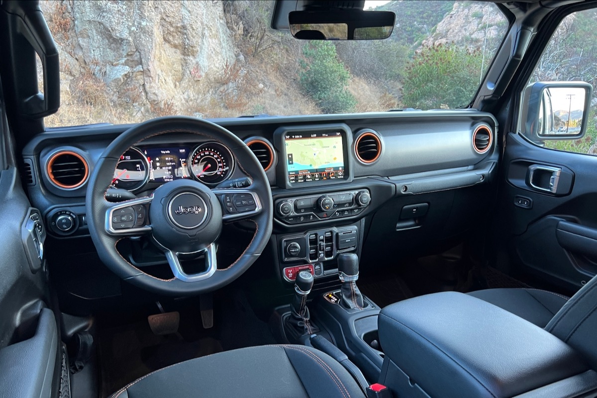 Jeep optioned our test vehicle with an automatic transmission instead of the standard 6-speed manual as well as Granite Crystal paint, a black hardtop with an extra-cost headliner, a spray-in bedliner, a Trailer Tow Package, a Premium LED Lighting Group, a Safety Group, an Advanced Safety Group, all-weather floor mats, and a front off-road camera (TrailCam). These upgrades bring the Canadian quoted MSRP to $73,580, including fees. A Cold Weather Group to add heated front seats and a heated steering wheel is also offered.