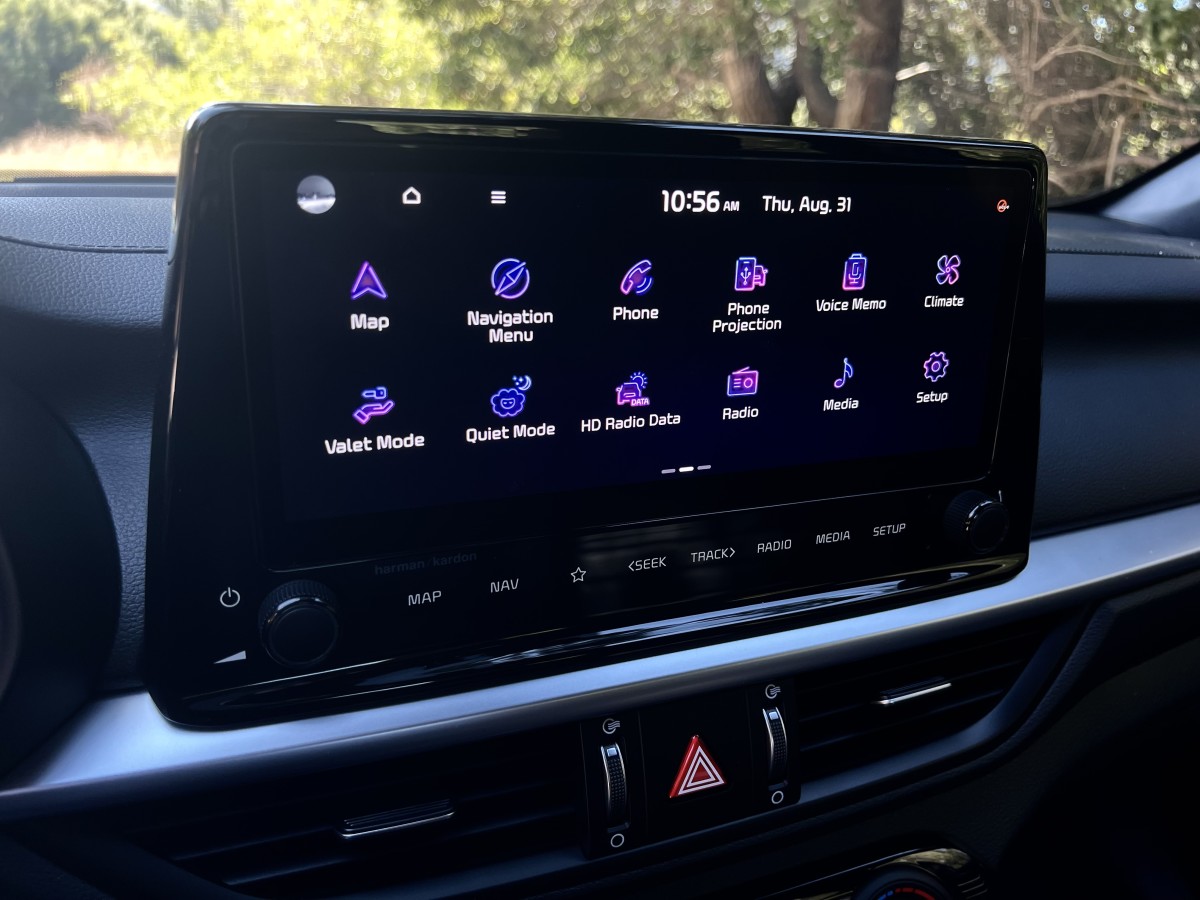 The infotainment system features sharp graphics and quick responses to inputs. The menu organization is logical and intuitive while buttons at the bottom of the frame give you helpful shortcuts to the most commonly used functions. Overall, the Forte meets expectations in regard to tech features and is comparable to other cars in the class. We were unable to get the wireless phone integration to work in our particular test vehicle, but we're convinced it was an anomaly since we've been able to make it work in other Forte models we've driven.