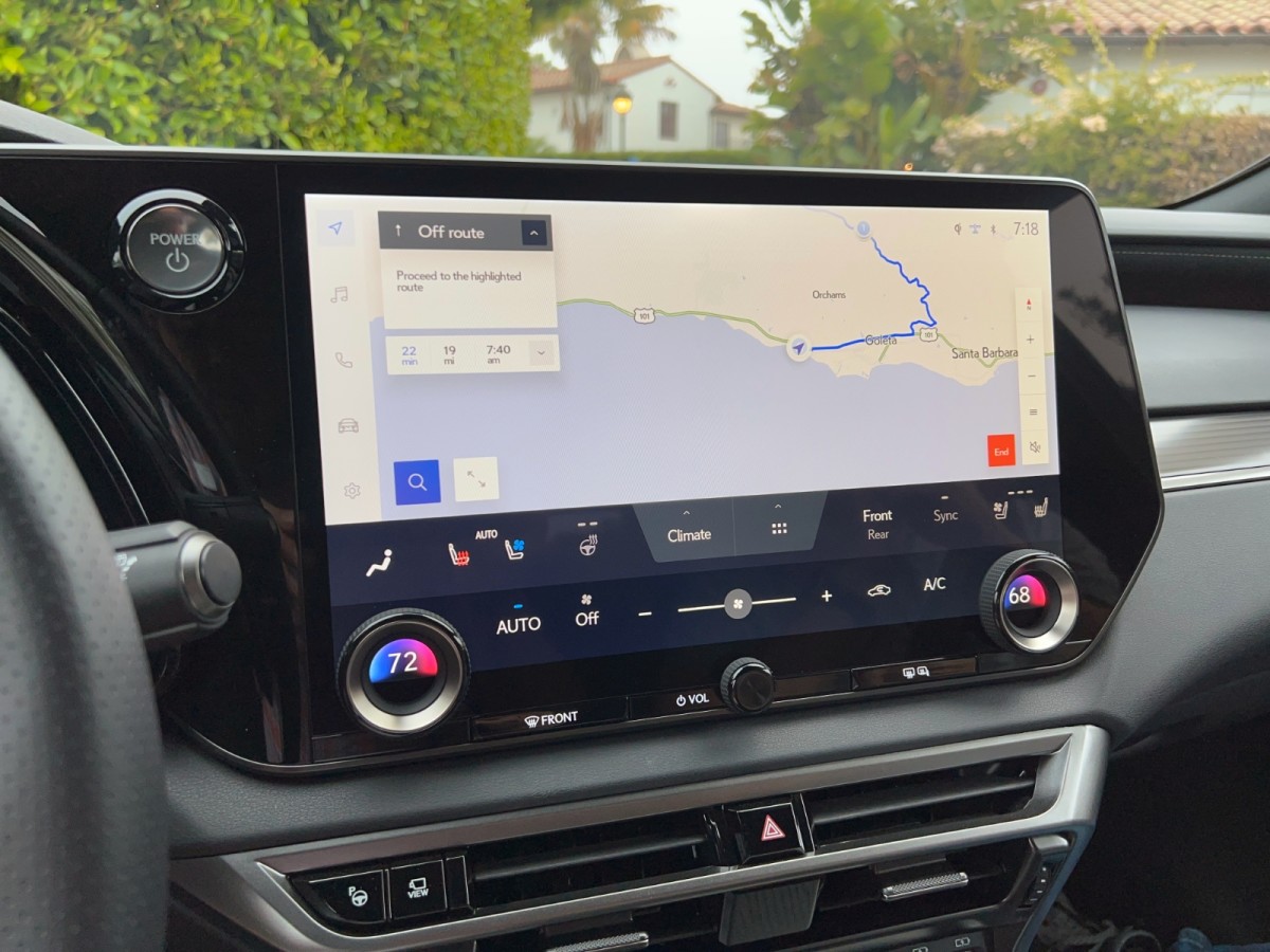 Lexus also offers a new Traffic Jam Assist system on the new RX. It works at low speeds, combining the adaptive cruise control with stop-and-go capability and the lane-centring assist system with the driver monitoring system to allow low-speed, hands-free driving capability. We did not test this, since the outskirts of Santa Maria are largely traffic-free.