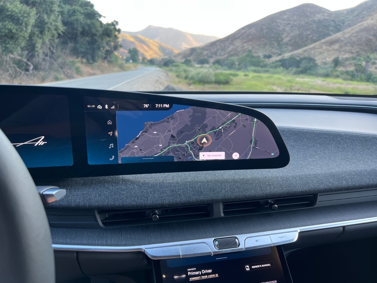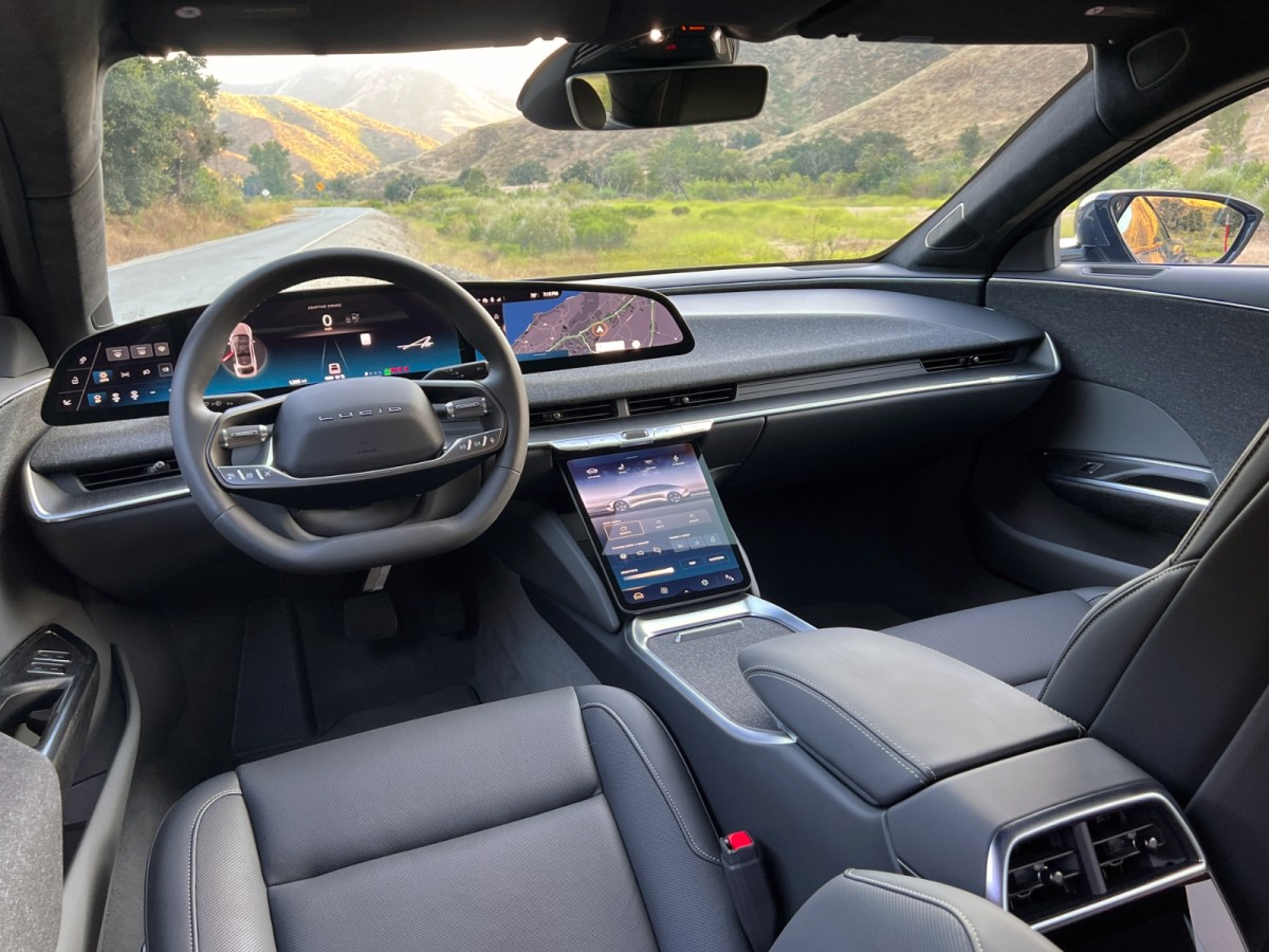 Lucid also provides a smattering of physical controls. For example, directly below the air vents, you’ll find switchgear for the climate system temperature, fan speed, and stereo volume. The steering wheel houses driving assistance and infotainment controls.