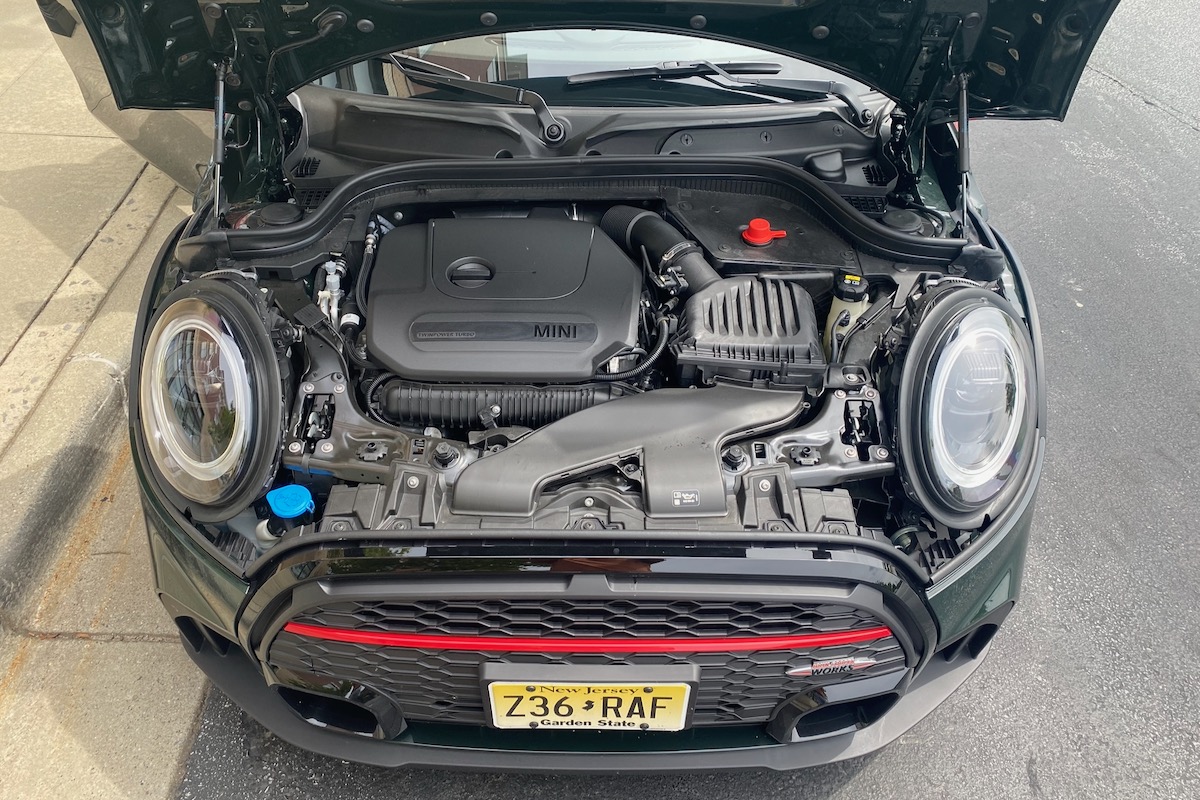 Our JCW is the quickest Cooper—with the most powerful engine. The 2.0-litre turbocharged inline-four produces power specs of 228 horsepower and 258 pound-feet of torque. This engine is unique to the JCW but not to MINI. It’s shared with certain BMW models sold in other markets. That’s a good thing because BMW makes fantastic engines. They rev smoothly, exhibit no harshness or uncouth vibrations, and pull strongly even in top gear. Turbo lag is minor. In a small car weighing under 1,400 kilograms, this is plenty of engine.
