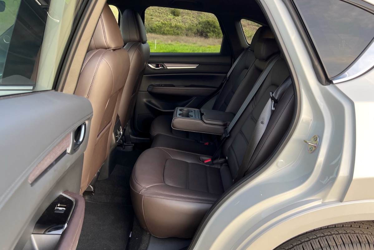 Our 2.5 Turbo Signature test vehicle had the new extra-cost Rhodium White metallic paint, standard Cocoa Brown premium Nappa leather upholstery, and an accessory rear bumper guard. These upgrades brings the manufacturer’s suggested retail price (MSRP) to $46,755, including a destination charge of $1,995. While this is a high price for a compact crossover, the CX-5 2.5 Turbo Signature seems worthy of it, unlike many of its rivals.