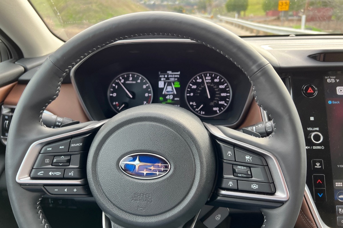 The Outback did treat us to a forward collision warning and automatic emergency braking event. While driving through the city after dark, we checked the right mirror to see if it was clear to change lanes. Simultaneously, a motorist ahead stopped in the lane to make an illegal left turn across double yellow lines. Just as our eyes returned to the road ahead, the tech took action to prevent a collision.