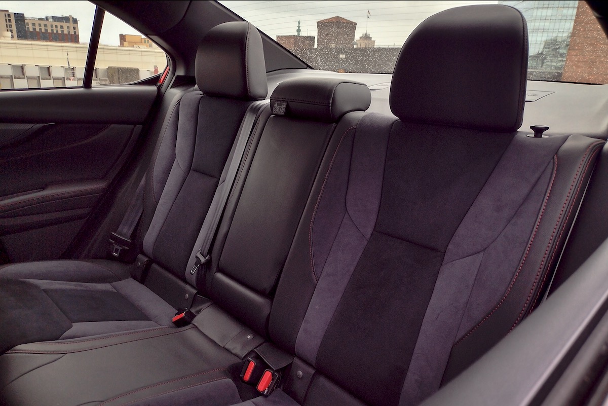 Driver seat power adjustments: height · Front seat type: sport bucket · Passenger seat manual adjustments: height · Rear headrests: adjustable · Rear seat folding: flat · Upholstery: leather-trimmed · Upholstery accents: faux suede