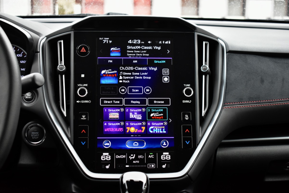 The menus were mostly easy to figure out although, as with other car brands, the interface for SiriusXM satellite radio requires a few too many steps. Some brands have gotten around this with sophisticated voice recognition that allows you to, for example, simply call out a specific channel name, but that hasn't reached Subaru and other mainstream brands. In our test car, SiriusXM also took an unusually long time to load on startup. Each time we started the car, we ended up driving a significant distance before any music started playing. On the top Sport-Tech trim, this will hit your ears through an 11-speaker Harman Kardon premium audio system with subwoofer and amplifier.