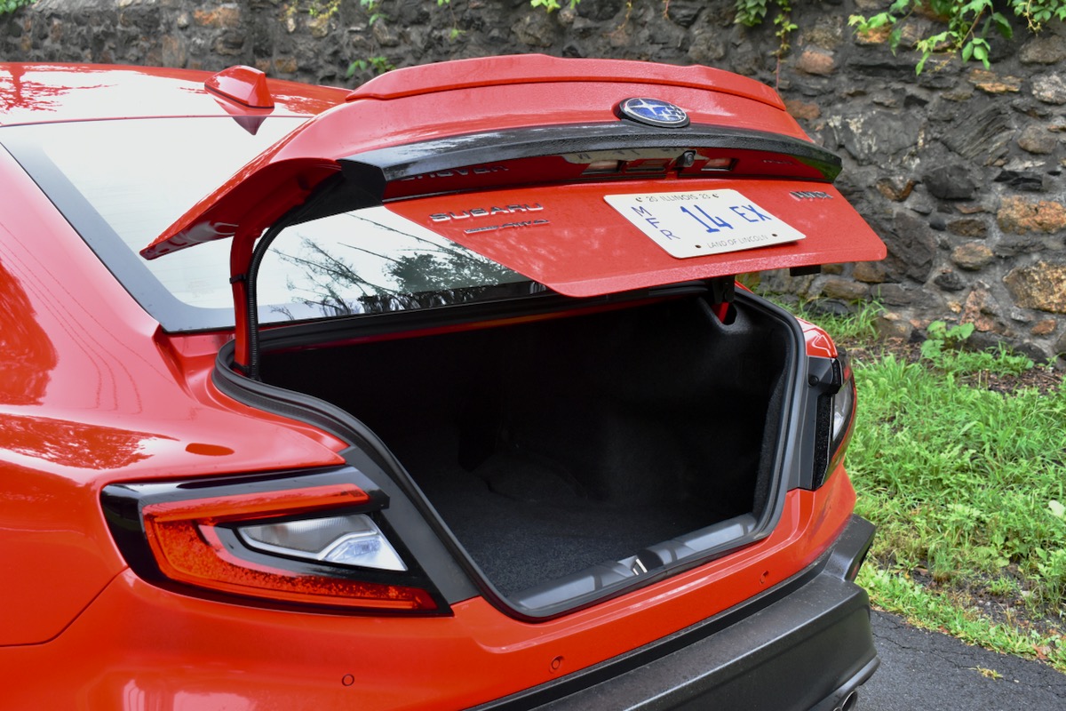 The Subaru's 354 litres of trunk space is less than the 408 litres offered by the Civic Si and the 299 litres in the Volkswagen Jetta GLI, or the Hyundai Elantra N’s 402-litre trunk. A 60/40 split-folding rear seat is standard, but Subaru doesn't quote a cargo-space number with the seat folded. Roof-rack mounts are standard as well.