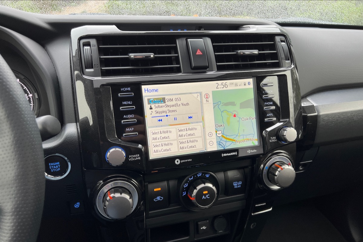 Though the display is small and the graphics date back years, the infotainment system’s home screen shows the radio station, the navigation map, and phone contacts. Get into a newer Toyota with the automaker’s latest infotainment tech, and you can’t display more than one menu or function at a time.