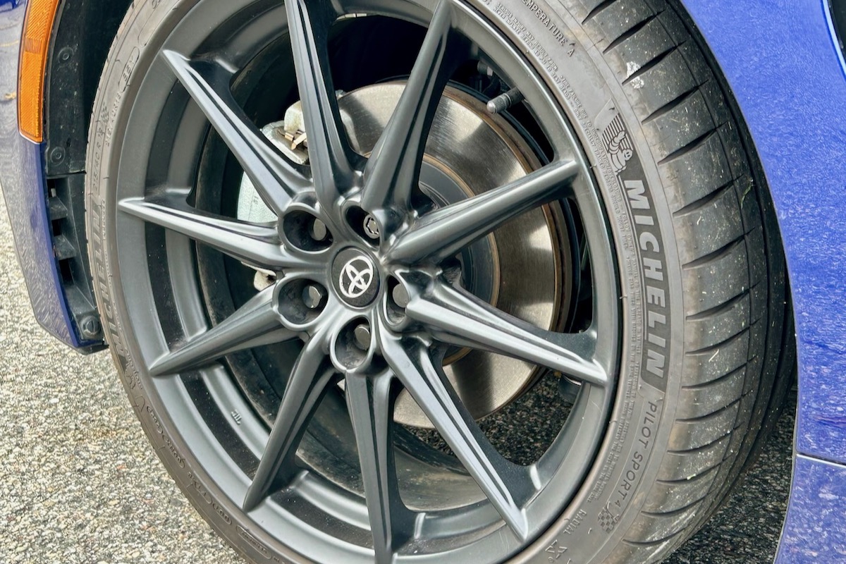 GR is for the road and track, and the GR86 is at home on both. Michelin Pilot Sport 4 tires are a perfect pairing, as they are designed for year-round hard driving, but they are not so aggressive that you can get yourself into trouble. With tires like these, you will start to feel when you’re approaching the limit of the car’s abilities, which is part of what makes it so great—you can learn the envelope of both car and driver.