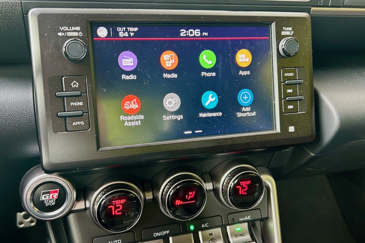 The GR86 comes standard with a fully digital instrument panel and a six-speaker stereo. The Premium trim upgrades the stereo to an eight-speaker unit.