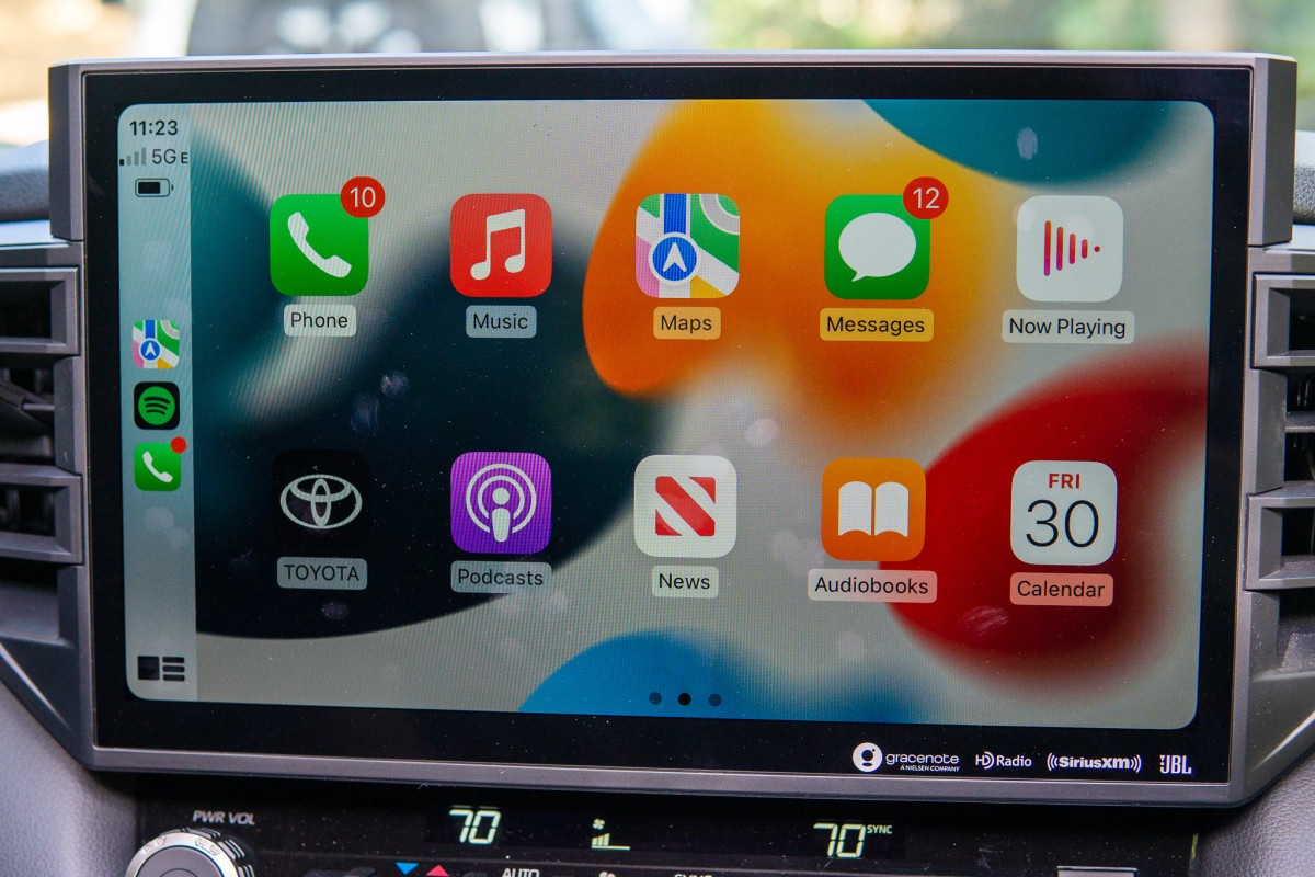 Connected in-car apps: Google search · Infotainment: Toyota Audio Multimedia · Infotainment screen size: 14 in. · Smartphone integration: wireless Apple CarPlay