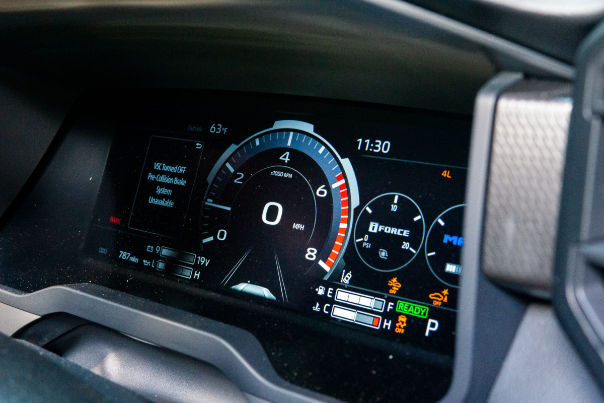 A 12.3-inch digital instrument panel is another show-stopper. The display is very impressive, with great resolution and brightness. All told, and when compared with older Tundras, the new generation is a technological marvel.