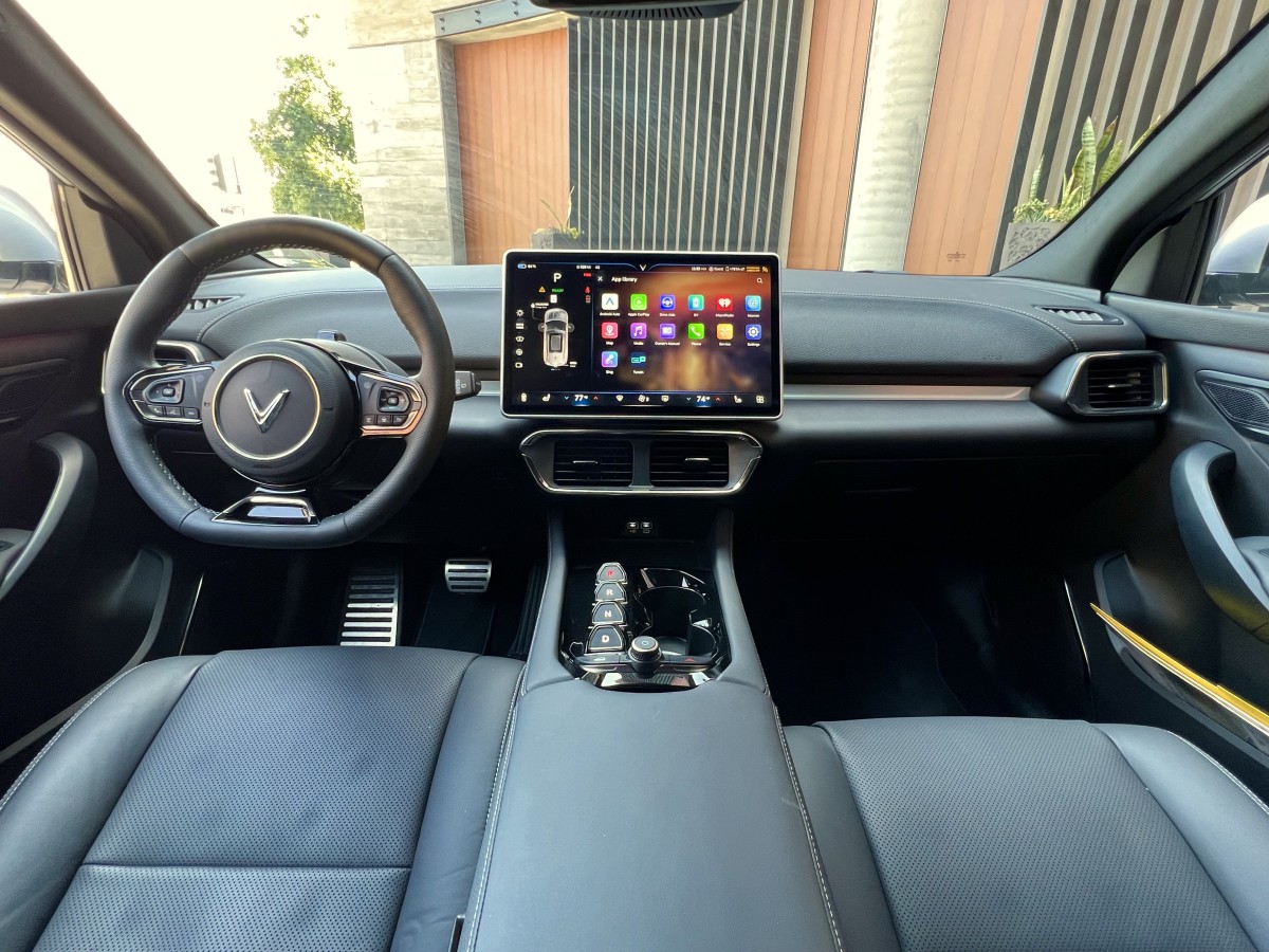We like how the large 15.6-inch infotainment touchscreen is placed high on the dash and within the driver's sightline to reduce distraction. The screen graphics are sharp and response is fairly quick, though the system takes a little too much time to boot up. As noted before, almost all functions are controlled through the touchscreen, which can be frustrating. There are voice commands that can help alleviate some of the annoyance. It's activated by saying, "Hey VinFast," followed by your request, such as, "how do I adjust the mirrors?" It takes several seconds for the request to be processed, though. We much preferred to use Apple CarPlay instead of the native infotainment system as it is more intuitive and familiar.