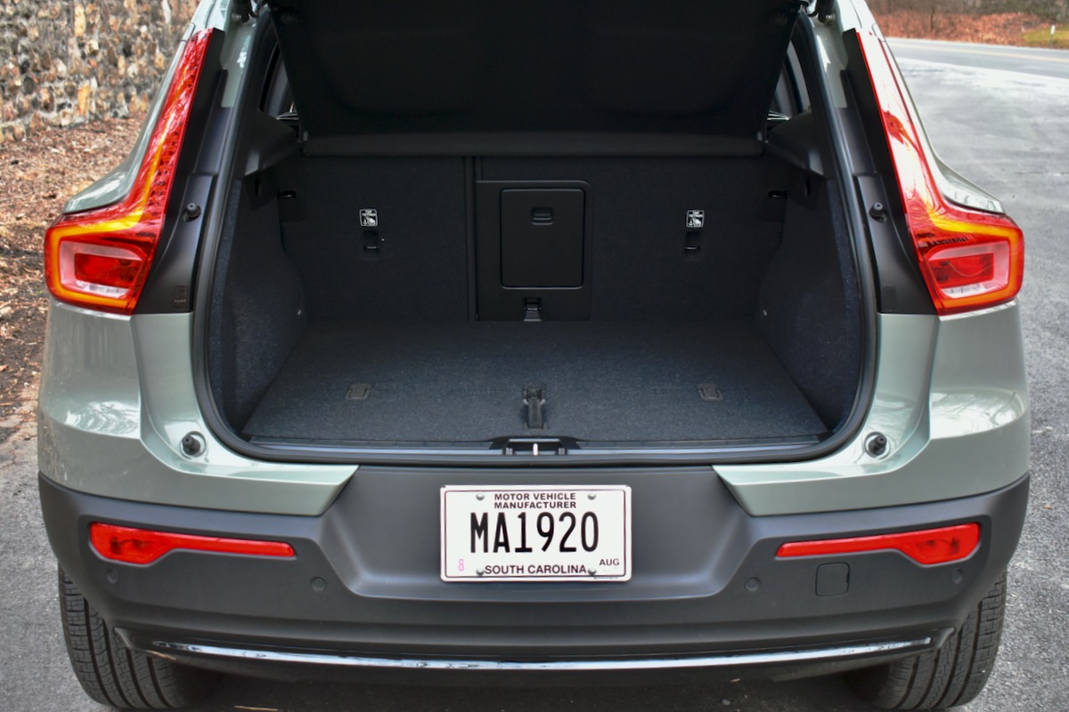 Among its competitive set, the XC40 is reasonably spacious. It’s tied with the redesigned 2023 BMW X1 for most rear-seat headroom, while front-seat headroom is only slightly behind the leading Mercedes-Benz GLA-Class. Legroom in both rows is about average, but a generous amount of shoulder room contributes to a greater feeling of spaciousness—and means you might actually be able to make use of the second-row middle seat without forcing people to squeeze uncomfortably together.