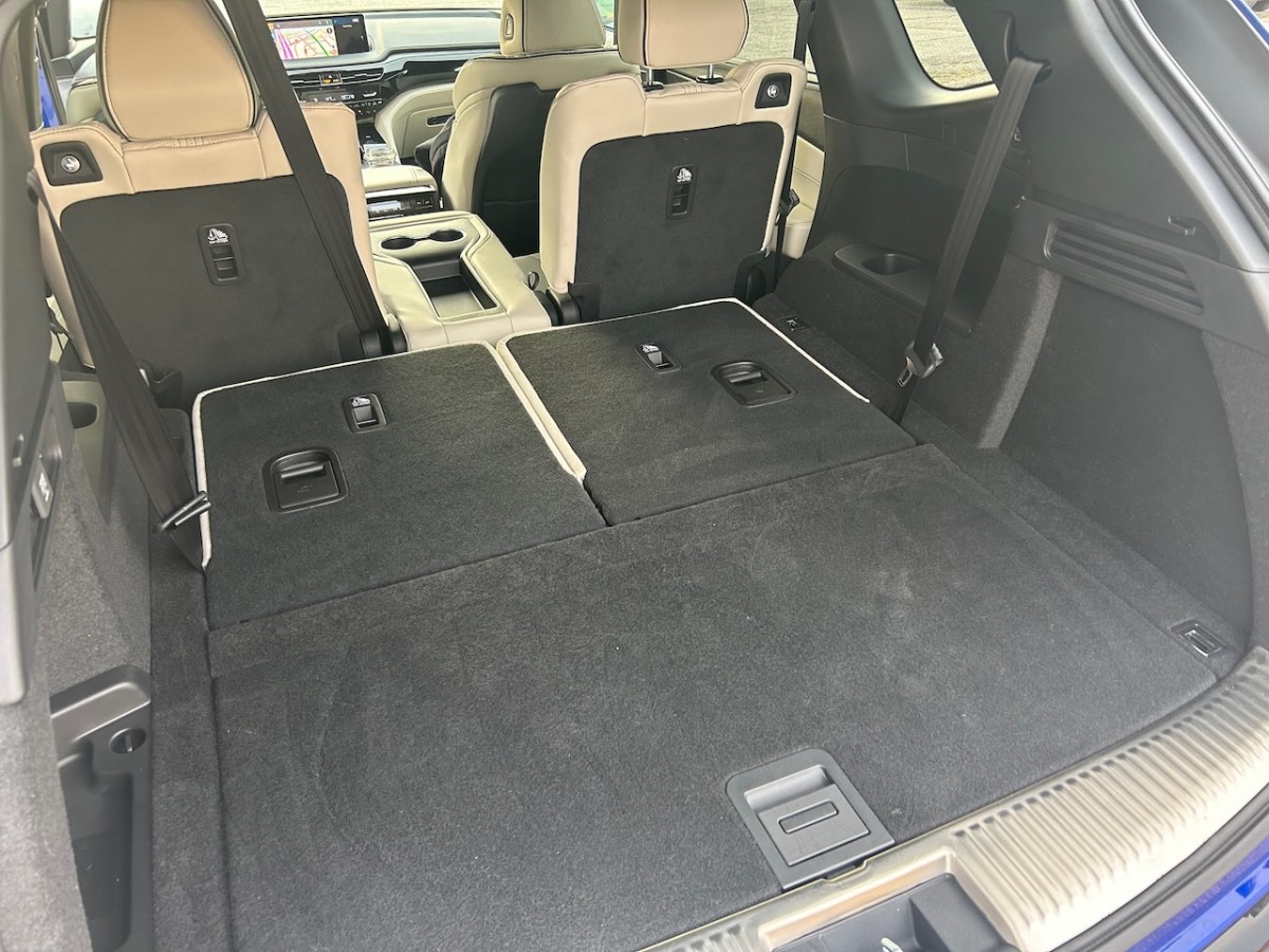 The MDX comes standard with three rows of seating. The first two rows are comfortable and supportive, but the third-row seats are on the smaller side and is best suited for children. You’ll find a maximum of 512 litres of cargo space behind the rear seats, and that number expands to 1,367 litres with the rear seats folded. Folding the second and third rows provides access to the maximum 2,690 litres of cargo space. (Note these are maximum figures, if you pack in every available corner. The standard measurements allowing for a line of sight out the back of the vehicle are 461/1,107/2,021 litres.) There’s also an additional storage area underneath the cargo load floor. The MDX comes standard with a hands-free power liftgate.
