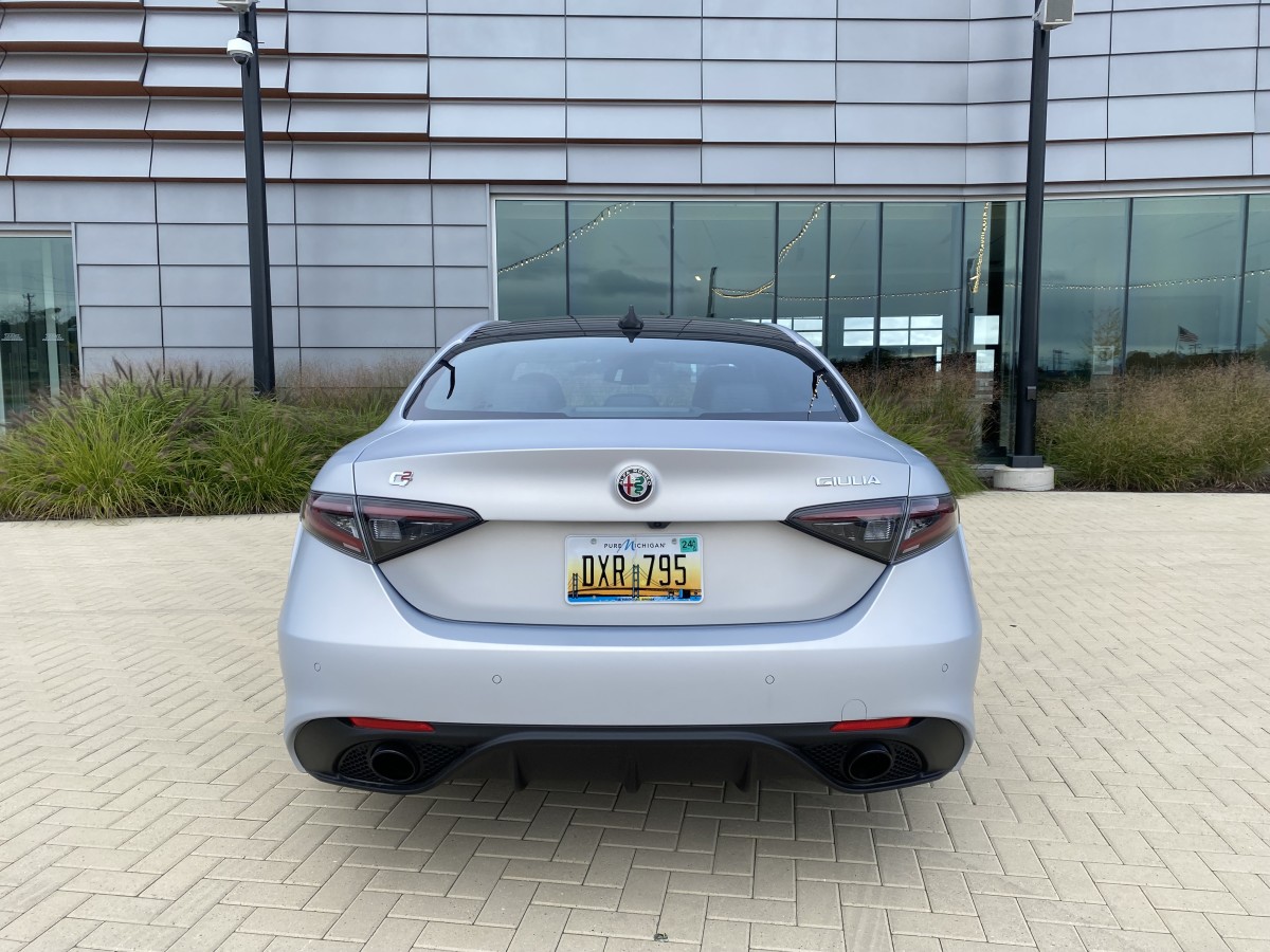 Else, it's the same classic sedan with textbook proportions. The Giulia sits low and employs short overhangs, gentle curves, and mild creases. It's soft and flowing except for the front end, which has the most eye-catching grille this side of a Bugatti. The downward triangle shape now has a new insert, and still no place to install a front license plate without mounting it on a tow hook or using the factory plate that partially blocks the lower grille. Practicality seemingly comes last to Italian designers, which makes the Giulia that much more special than competitors.