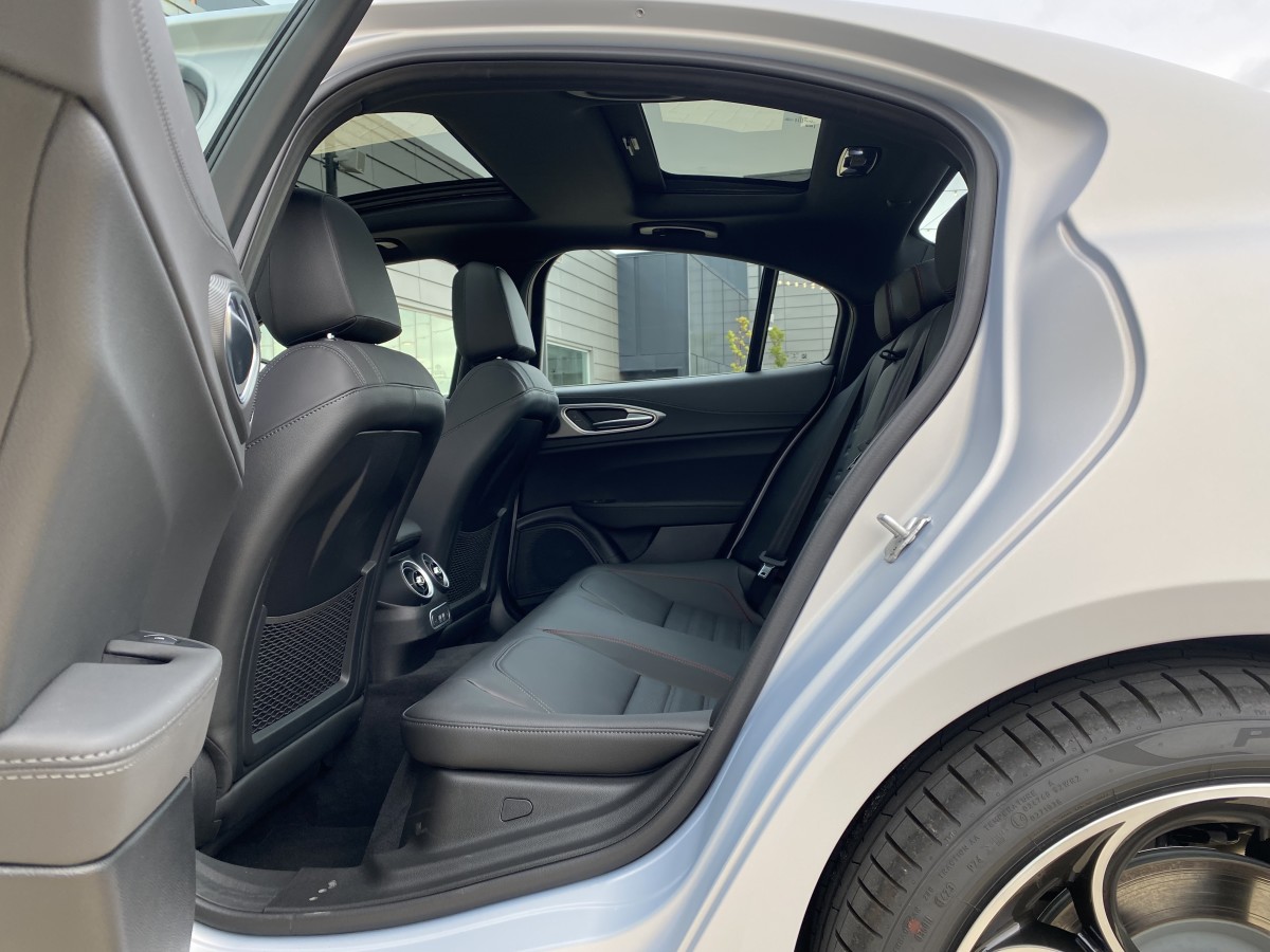 For short trips, our Competizione's back seat was livable with two large air vents, heated outboard seats that come standard on every Giulia, two USB ports, and a separate moonroof. Consider the Giulia as a 2+2 coupe with four doors. Part of this feeling has to do with cars growing in size dramatically with every new generation. If you want more space, buy the Stelvio SUV. It drives and looks nearly the same for just a little bit more money.