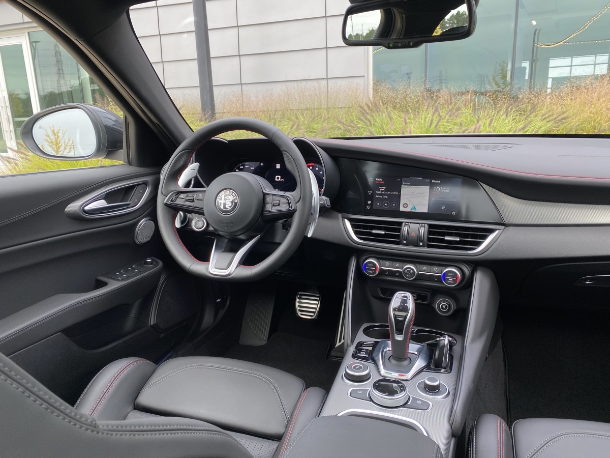 RWD, which Alfa calls “Q2,” is standard on the Quadrifolgio in Canada, and it’s the only choice. All other trims sold in Canada come with standard all-wheel drive (AWD), known as “Q4.” Fuel economy is estimated by Natural Resources Canada at 10.5 litres per 100 kilometres in the city, 7.7 on the highway, and 9.2 combined for the normal Q4 trims. These figures are average for the class. The Quadrifoglio is relatively efficient for a high-performance sedan at 13.5 L/100 km city, 9.3 highway, and 11.6 combined. That's better than the M3 and CT4-V Blackwing.
