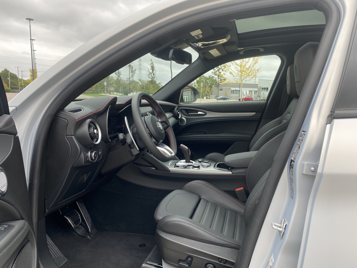 AWD, which Alfa dubs “Q4,” is standard on every trim in Canada. (A rear-wheel drive (RWD) version is available in the United States but not offered here.) Most trims are rated at fuel economy of 10.8 litres per 100 kilometres in city driving, 8.3 on the highway, and 9.6 combined. The Quadrifoglio is actually efficient next to most high-performance SUVs in this size, at 13.9 L/100 km city, 10.3 highway, and 12.3 combined. That's much better than the BMW X3 M and Jaguar F-Pace SVR.