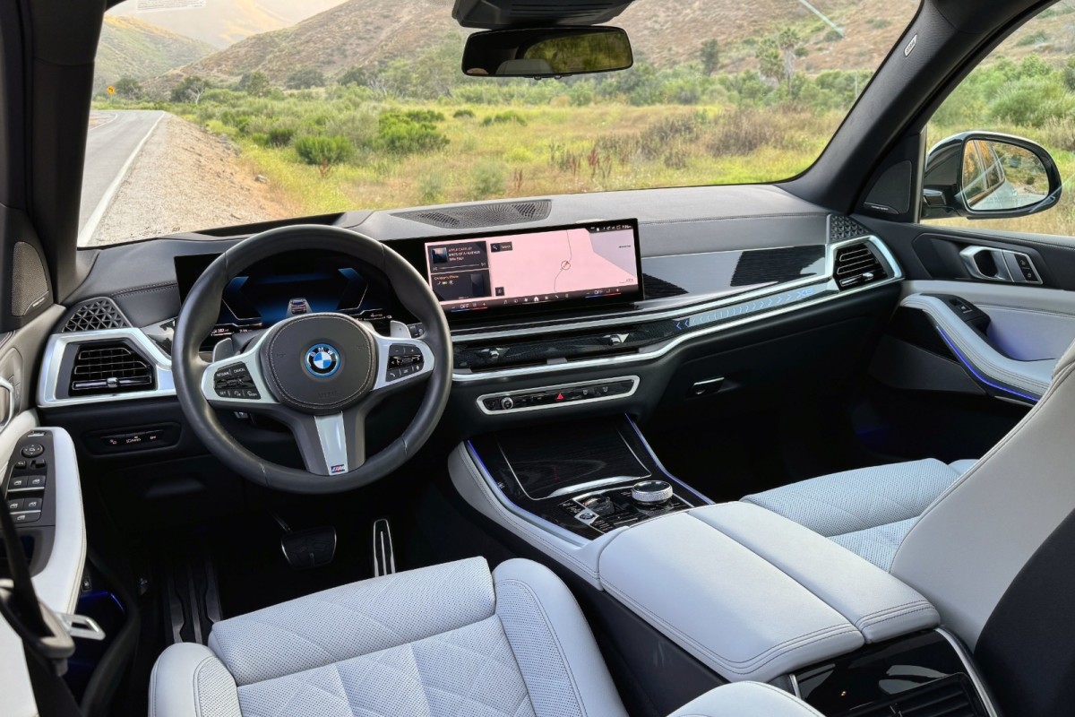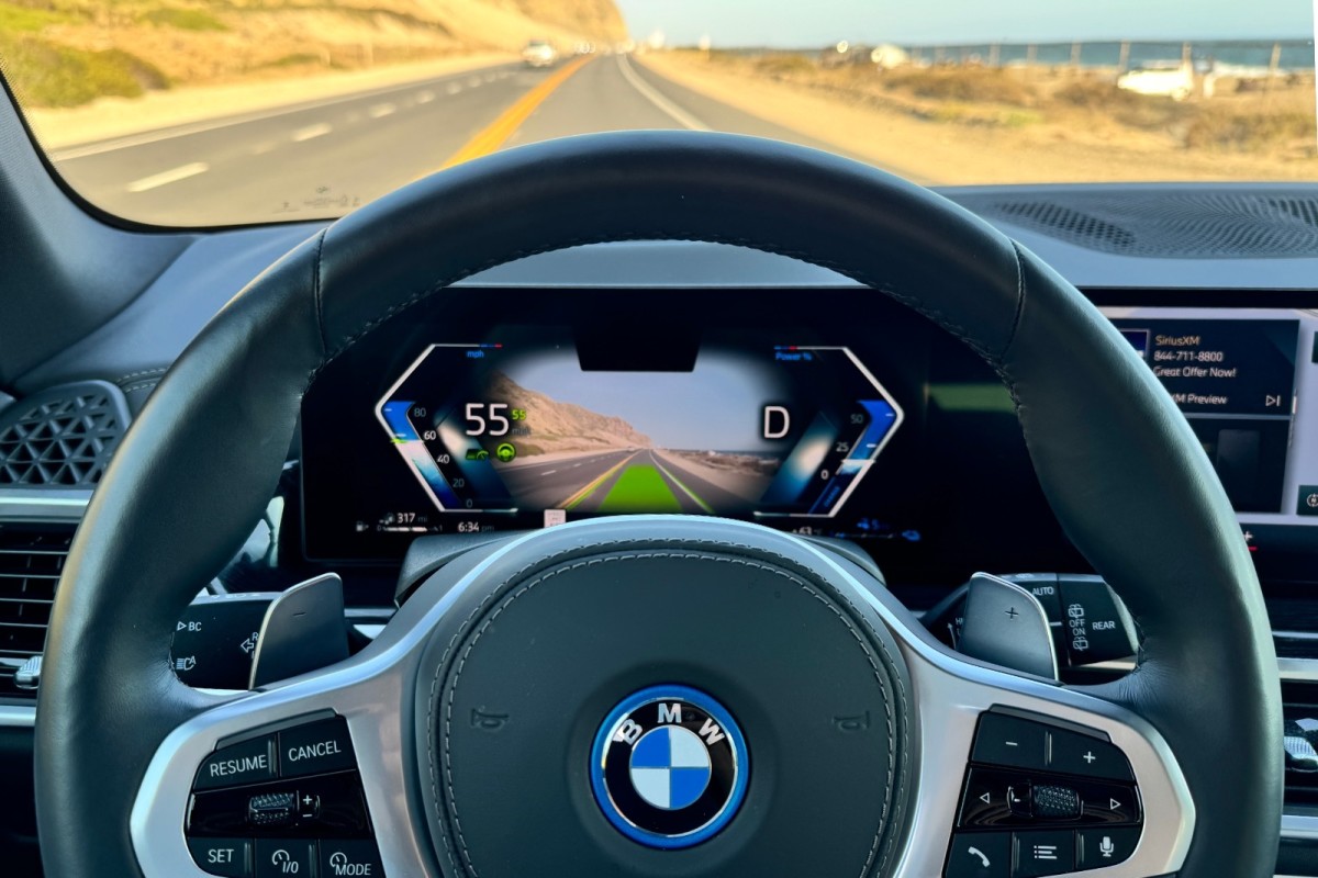 We had no trouble pairing an iPhone 15 to the BMW, and it’s easy to switch back and forth between Apple CarPlay and the native infotainment system environment. The interface is reasonably intuitive, and there are numerous apps available, including the ability to take Zoom calls, eliminating an excuse to skip meetings. The test vehicle also had the optional Harman Kardon sound system, which is terrific.