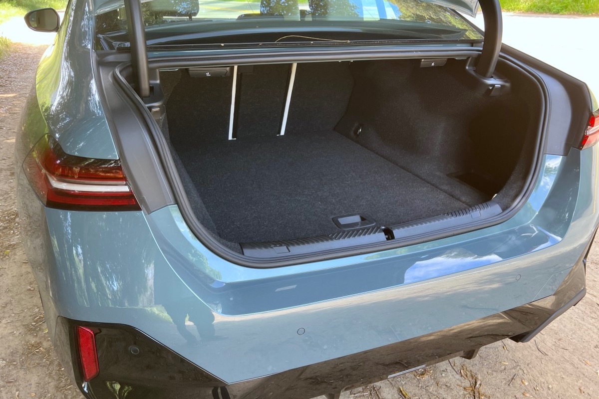 Behind the rear seats, the trunk has up to 490 litres of cargo space. It's a large and very usable space that should be able to swallow several large suitcases. That's a good thing since the i5 lacks a front trunk (frunk) that many other EVs benefit from.