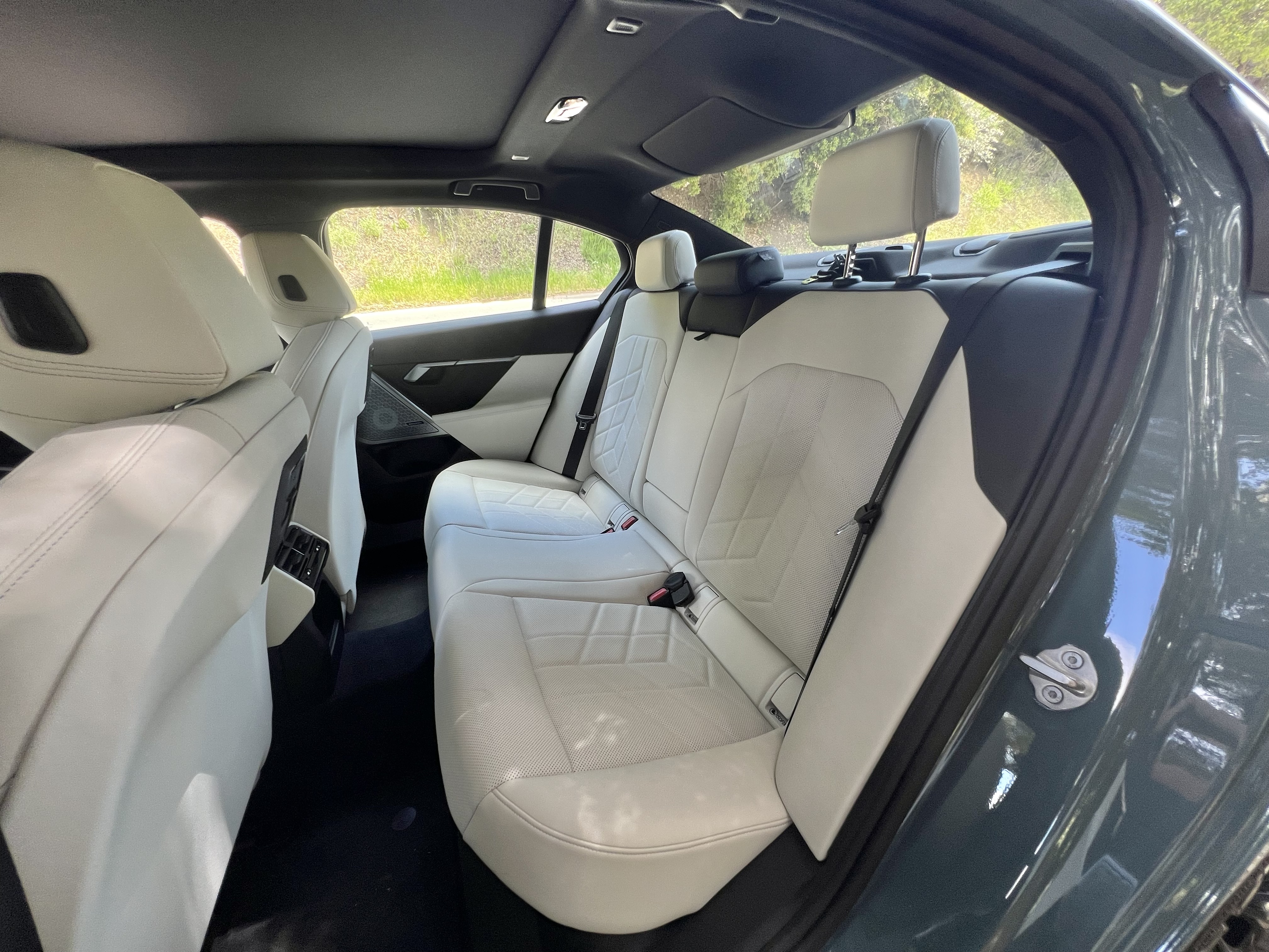 The seat upholstery features beveled quilting that adds some visual interest while tying into the exterior's styling cues. The leather quality is comparable to other luxury vehicles, as are most of the other plastic interior elements. The piano black section of the centre console feels just as sturdy as other cabin parts, but the glossy surface is a magnet for dust, fingerprints, and smudges. On the whole, the i5 feels solidly built and easily meets expectations for a luxury sedan.