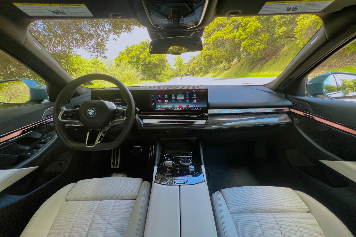 As expected, the i5 delivers a nearly silent driving experience, with only a hint of road noise on the highways. Ride quality is pleasantly smooth, isolating passengers from moderate ruts and bumps in the road, though the M60's stiffer suspension noticeably firms things up. Whether you're more prone to comfortable touring or spirited cornering, the i5's broad range of skills has you covered.