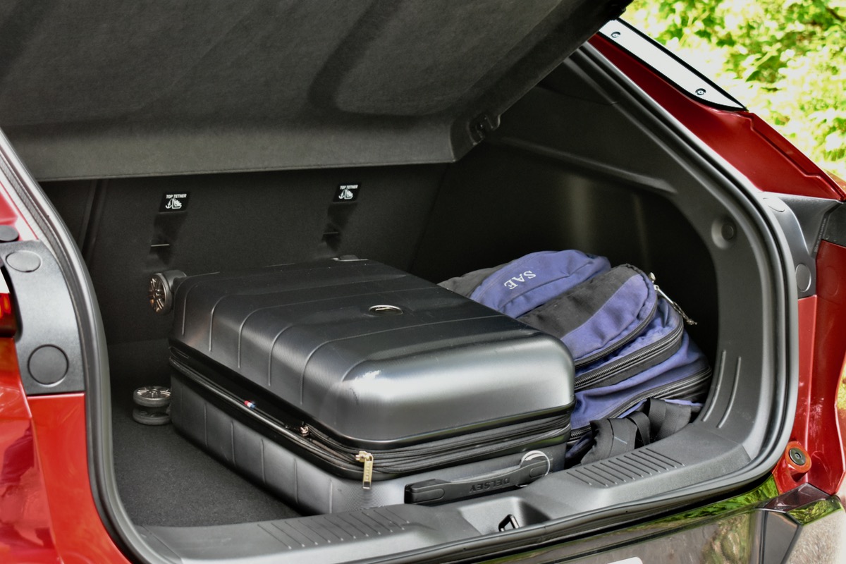 Thanks to that longer wheelbase, rear-seat legroom grows by 7.6 cm. Shoulder room in both rows is about 5 cm greater as well, creating a less claustrophobic feeling. However, headroom in both rows decreases slightly, with a bigger decrease for second-row passengers, likely a result of the Envista's plunging roofline. The seats themselves were also relatively comfortable, considering the price point, without feeling overstuffed and squishy. A power moonroof is optional on Sport Touring and standard on Avenir, and the same goes for a power liftgate.