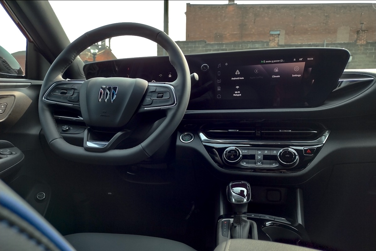 The interior itself is similar to the Trax cabin, with a few detail changes. The Chevy's large round air vents and upturned surfaces are gone, in favour of a smoother, more streamlined look. Buick also added some softer materials to the dashboard and door armrests, but with a grained texture that looked and felt cheap and artificial. That's in keeping with the price point though, as is the cloth-and-leatherette upholstery on the base Envista Preferred (leather seats are standard on the Avenir). All trim levels get a flat-bottom steering wheel, with an eight-way power driver's seat standard on all trim levels in Canada.
