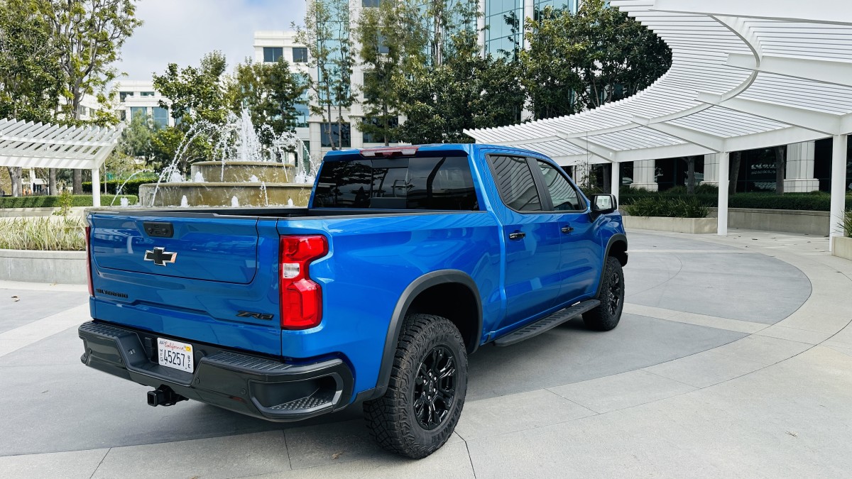 Ford also offers the fully electric F-150 Lightning. The Silverado also comes in an EV format, but is currently only offered to fleet customers in the WT trim. Our ZR2 tester with the diesel engine, the $1,970 technology package, a sunroof, the cool Multi-Flex tailgate and a fancy Glacier Blue Metallic paint job comes to $92,594 including $2,200 for delivery.