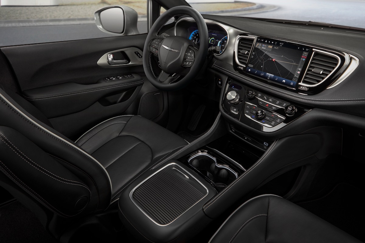 The Pacifica comes standard with a 10.1-inch touchscreen running the familiar Uconnect 5 infotainment system, which incorporates wireless Apple CarPlay and Android Auto connectivity, Bluetooth, and available SiriusXM with 360L satellite radio compatibility. The instrument cluster has analog gauges with a 7-inch digital display in between. The Pacifica is also available with up to 12 USB-C ports spread across all three rows, as well as built-in navigation and a 19-speaker Harman Kardon audio system.