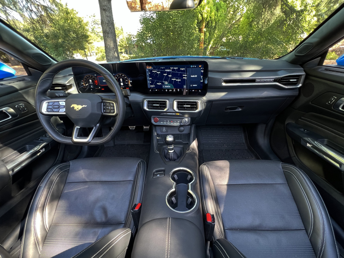 All 2024 Mustangs come with a large 13.2-inch infotainment touchscreen and a digital instrument cluster. Base models have two separate screens while Premium models have them in a single enclosure. The Sync 4 infotainment system benefits from sharp graphics and a logical menu structure that makes it easy to use. The responses to inputs can be rather slow, though. We're often opposed to placing primary climate controls in the touchscreen, but in this case, it seems to work well since the buttons remain at the bottom of the screen at all times. It also helps that once you set your desired temperature, the system does an excellent job of maintaining it with little or no adjustments needed.