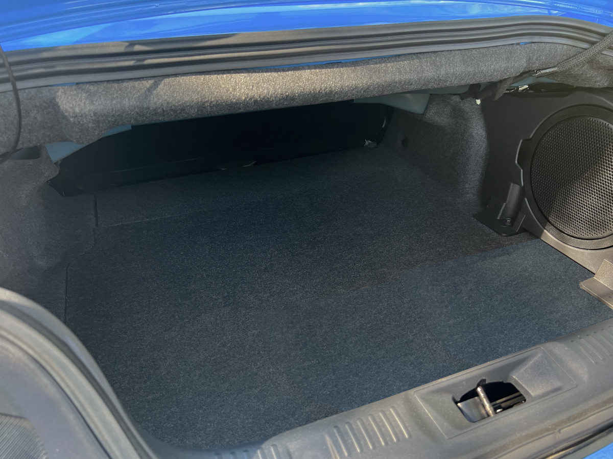 For smaller personal items, the Mustang is somewhat lacking. The cupholders are only about average in size, as are the door pockets and small centre armrest bin. There is at least a rubberized tray with an available wireless charging pad that keeps your phone in place.