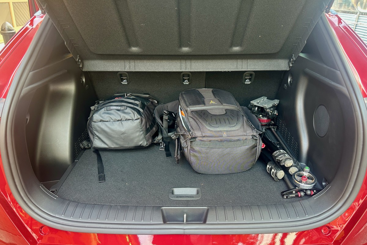 It’s in the rear seat and the cargo area that the extra length of the new Kona really makes itself felt. Rear-seat legroom sits at 970 millimetres, 77 mm than the 2023 Kona and 15 cm more than the 2023 Toyota Corolla Cross, and the new narrower, molded front seats create a more comfortable space for passengers in that second row. Headroom has also increased, to 974 mm front and 972 mm rear with the sunroof, but the real news is cargo capacity: It’s gone from 544 to 723 litres of storage space with the rear seats up and 1,803 litres with them folded down. That’s more than 500 litres of additional space over the first-gen Kona.