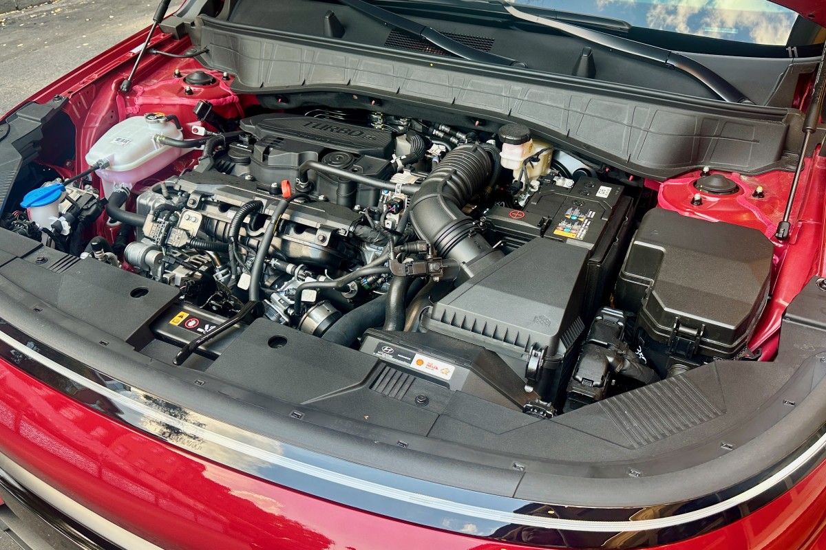 The 2024 Kona retains the engine lineup of its predecessor, with a naturally aspirated 2.0-litre four-cylinder engine powering the Essential and Preferred trims and a turbocharged 1.6-litre four-cylinder under the hood of the N Line trims. The base engine makes 147 horsepower and 132 lb-ft of torque and comes with a continuously variable transmission (CVT), while the turbo makes 190 horsepower and 195 lb-ft of torque. The seven-speed dual-clutch transmission (DCT) of the old 1.6-litre Kona has been replaced for 2024 with an 8-speed automatic transmission. Paddle shifters come with the N Line.