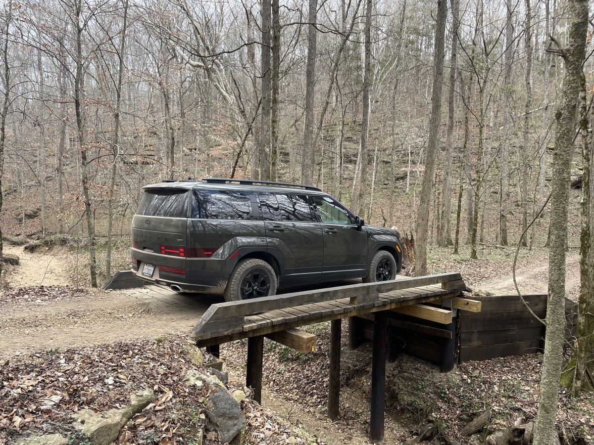 Our test drive included an off-road jaunt in the Santa Fe XRT. It’s comparable in capability to SUVs like the Kia Telluride X-Pro, Nissan Pathfinder Rock Creek, and Subaru Forester and Outback Wilderness trims. Like those competitors, the Santa Fe XRT can easily handle a trip to a somewhat remote campsite, thanks in large part to its ground clearance and robust tires. The off-road settings are straightforward and easy to access, and the hill-descent-control feature lends confidence on steep slopes.
