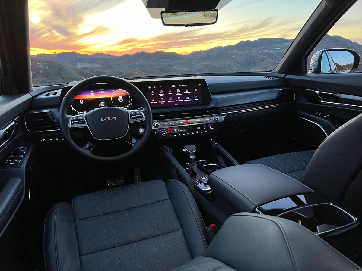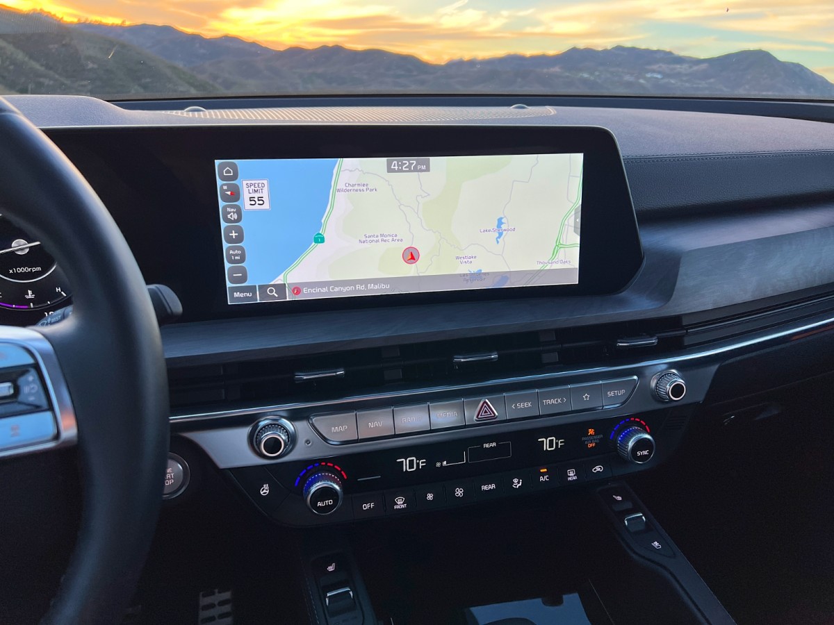 Kia makes up for that by including numerous thoughtful details in the Telluride. For example, the available 12.3-inch digital instrumentation panel offers a view that superimposes data on a scenic landscape that changes with the time of day. At sunset on a nice day, it matches the sky. At sunset on a cloudy day, it brings some natural beauty into your peripheral view.