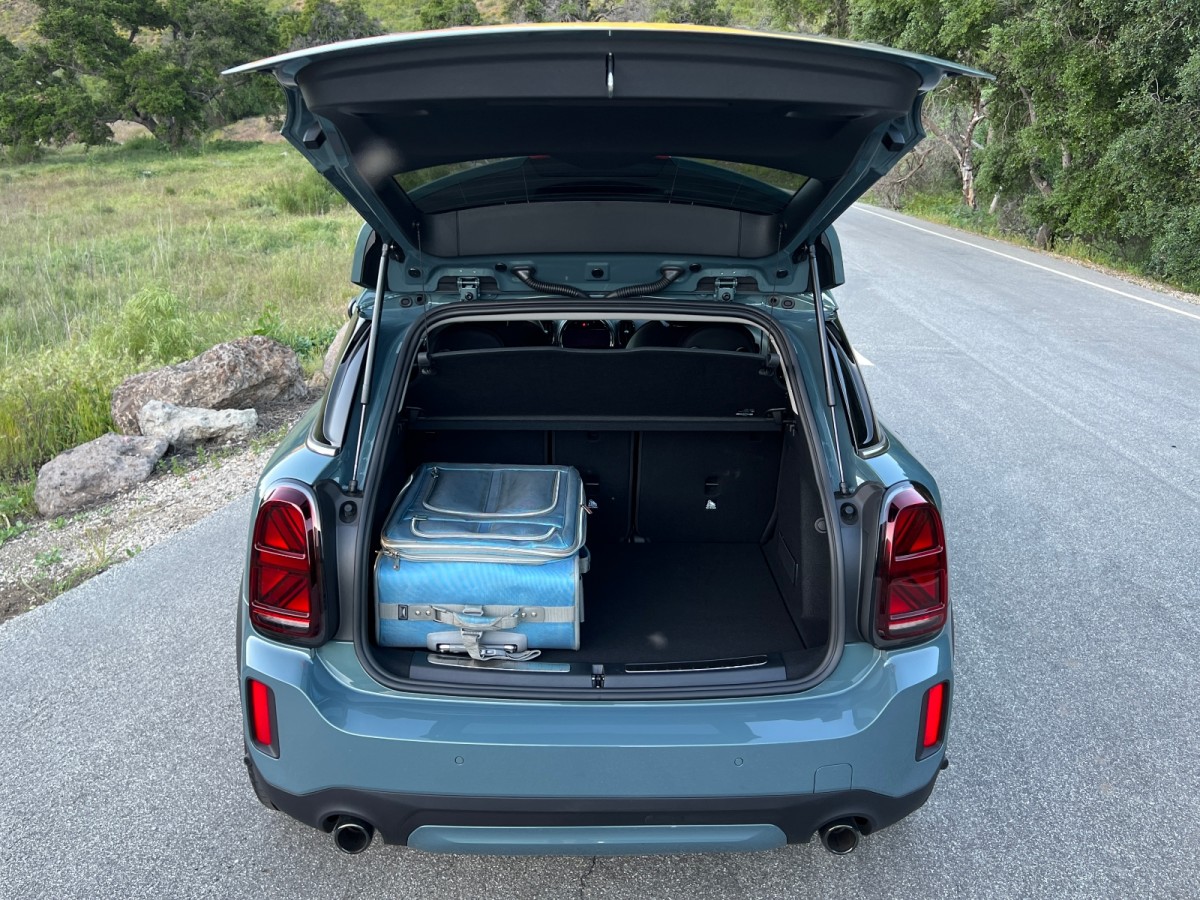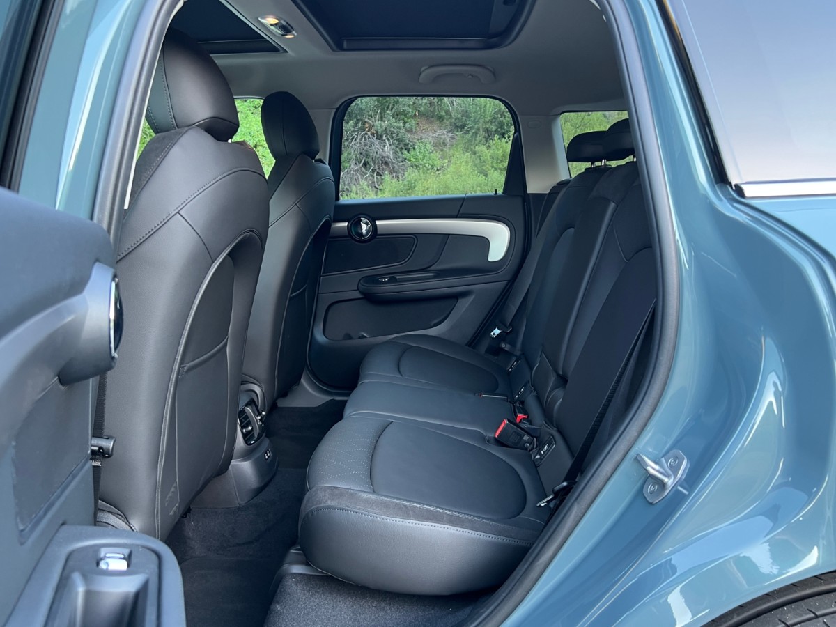 Step into the Countryman, and you’ll find room for four adults and just enough of their luggage to accommodate a week-long road trip. You sit up straight in the MINI Countryman, on small but supportive and comfortable front seats, and the steering wheel is a delight to grip. Though the SUV contains seatbelts for five people, four will be happier inside the Countryman. We found enough legroom in the rear seat for lanky limbs and plenty of foot room for large feet, but squeezing a fifth person in appears impossible unless all three rear riders are children.