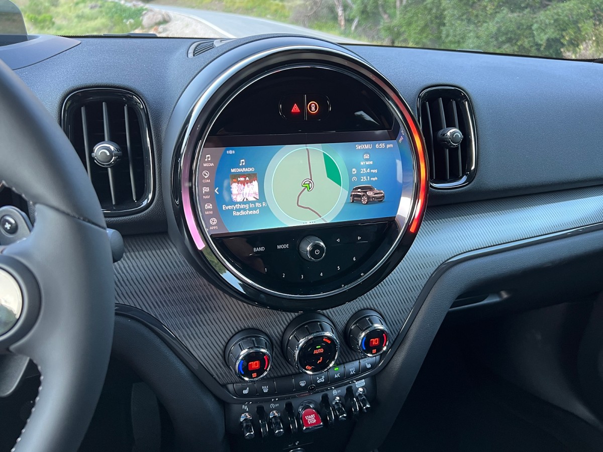A MINI Countryman isn’t a technology powerhouse, but what it does have is useful. In addition to a small digital instrumentation display perched on the steering column where MINI once located motorcycle-style gauges in a pod, our test vehicle had a head-up display (HUD) projecting information on a small screen. Though it is mounted only slightly higher than the digital instrumentation, we found the HUD useful.