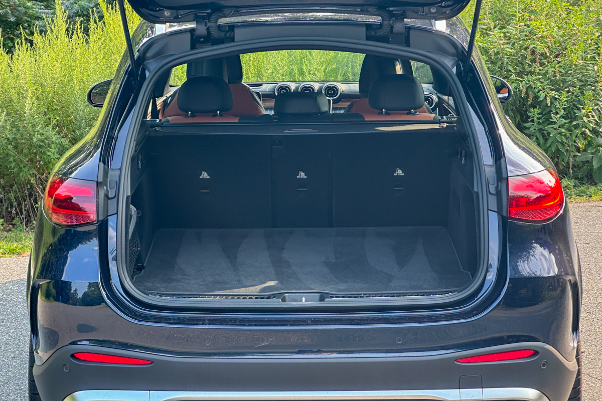 As we reported in 2023, the new GLC SUV offers 620 litres of cargo space in the back, which expands to 1,680 litres when the rear seats are folded down. That those specs are not spectacular is somewhat ameliorated by the convenience of the standard power-folding rear seats and the fact that they do lie flat. The GLC Coupe is, of course, tighter on the inside. It offers just 545 litres of cargo volume with the back seats in place, not much better than some sedans (the Honda Accord’s trunk offers 473 litres of storage). At least the Coupe’s hatchback-like interior configuration allows for 1,490 litres of space when the rear seats are folded down.