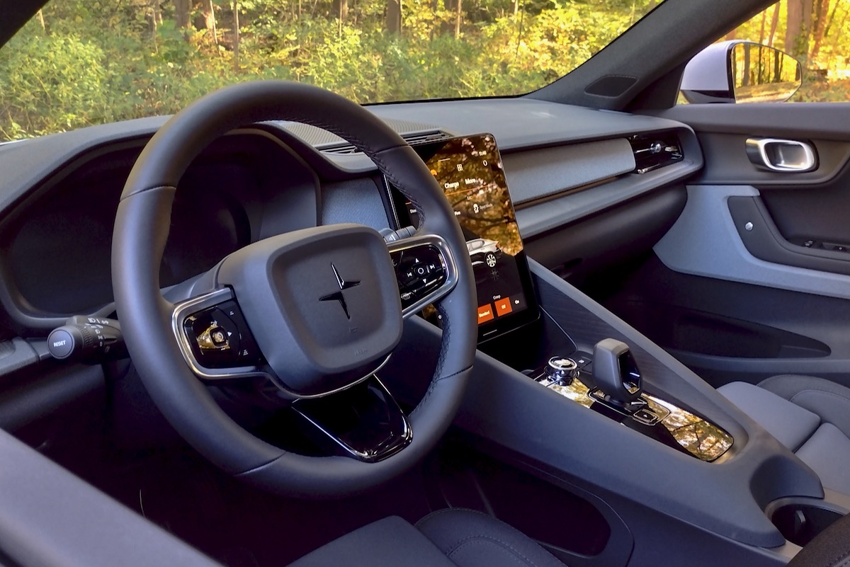 The styling still has some Volvo ingredients, including the parent brand’s trademark “Thor’s Hammer” headlights. But for 2024 the Volvo-like grille has been erased. There’s now just a blank space between the headlights that Polestar has dubbed the “SmartZone.” It’s meant to highlight the sensors for the car’s driver-assist systems, but it also emphasizes that this is an EV.