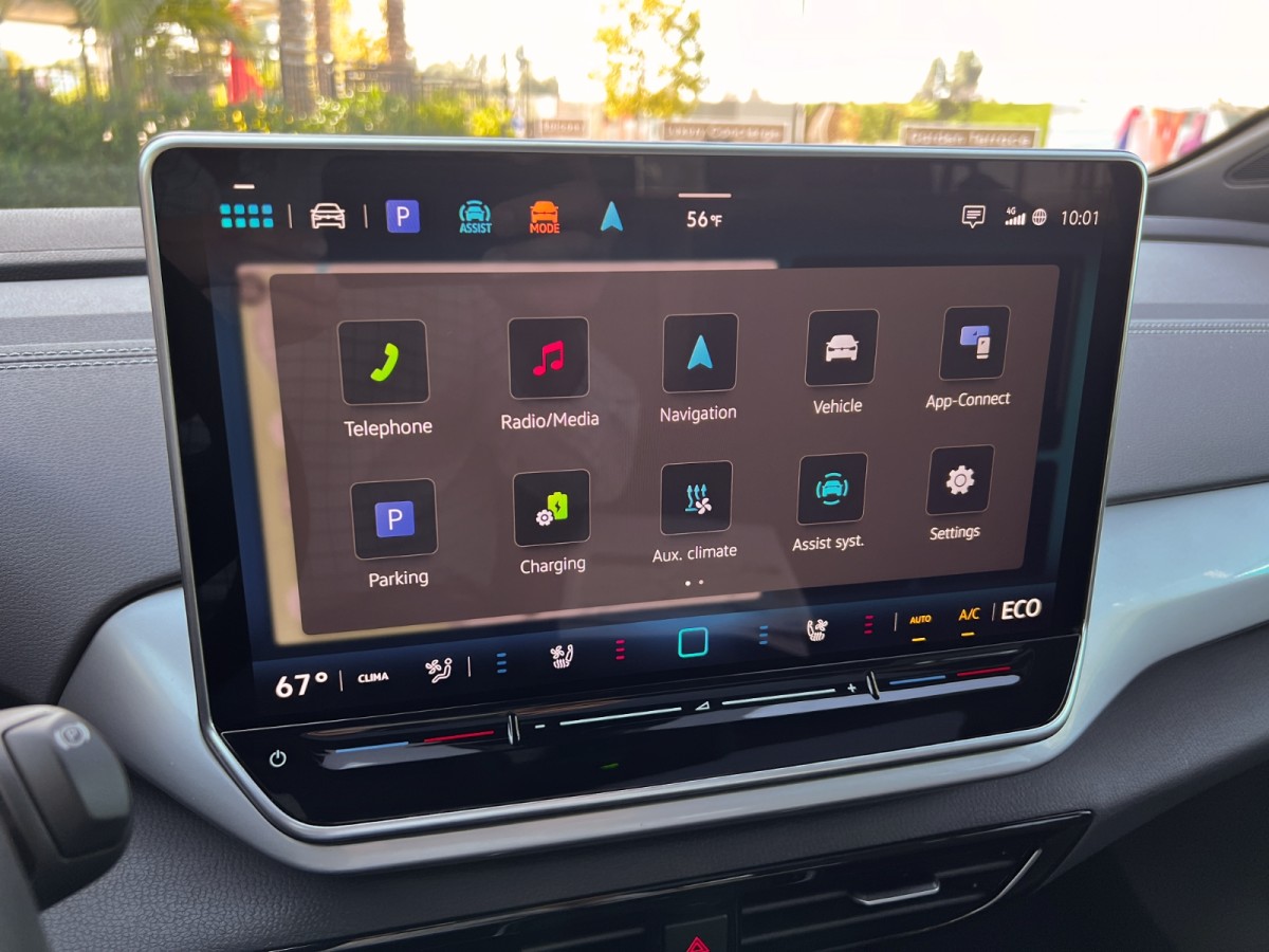 In addition to the new rear electric motor, the big news for the 2024 VW ID.4 is the 12.9-inch touchscreen infotainment system that comes standard with the Pro models. In some ways, it isn’t as graphically appealing. But the user experience improves, and that’s what is important.