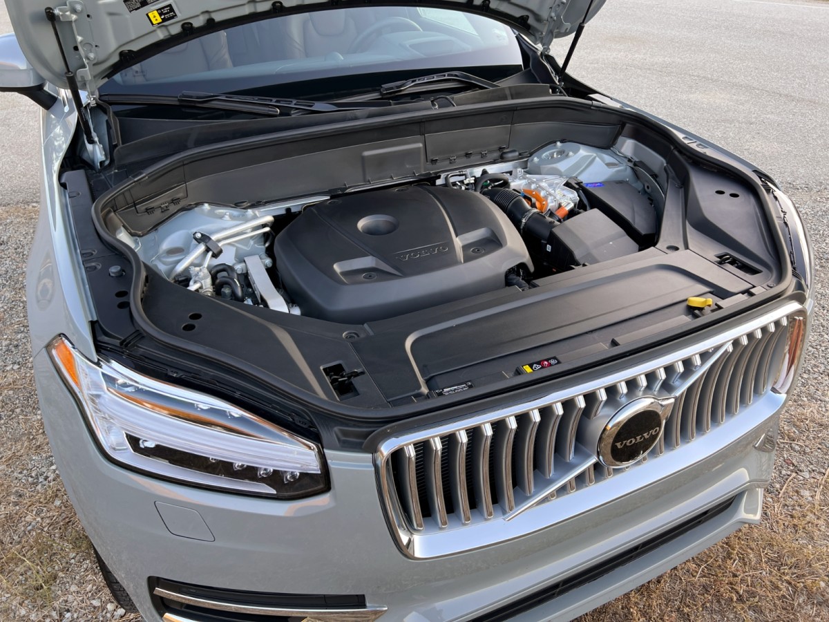 To create the 2024 XC90 Recharge T8, Volvo adds an 18.8-kilowatt-hour battery and a 107-kilowatt electric motor to the B6 model’s supercharged and turbocharged 2.0-litre four-cylinder engine. Together, these components produce 455 horsepower and 523 lb-ft of torque, delivered to all four wheels through an eight-speed automatic transmission.