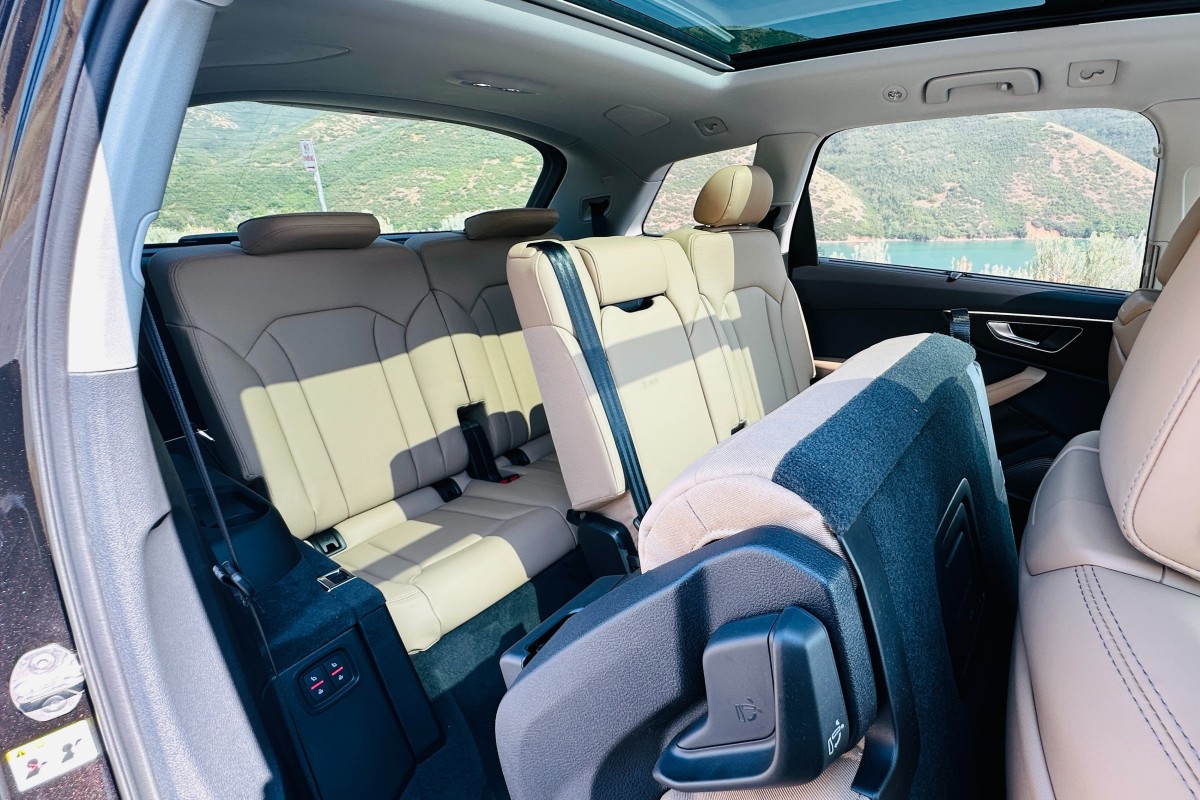 The Q7 has three rows of seating, but you'd better believe that third row is made for kids and only for kids. Folding the second row is a bit cumbersome, and there is barely enough room to squeeze back there once the second row is out of the way. A grownup in the third row will have their knees to their chin, and moving the second row to its most forward position doesn’t provide much more legroom. However, there are LATCH attachments at all seating positions in the second and third rows, and the third row can fold electronically.
