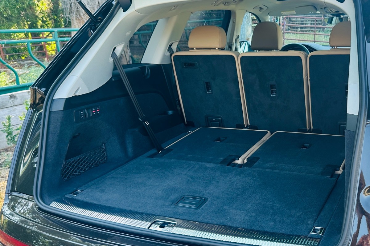 However, buyers can add some customization if they wish. The front bumper, door trim, and rear diffuser can be optioned up in different finishes, and the Black Optic package adds black accents, Anthracite Gray Audi rings in front, and blacked-out chrome exhaust tips. One cool new feature is the laser-etched badging on the B-pillar. Buyers will have the brand and model right there to show off to friends or to remind themselves that they are indeed driving an Audi Q7.