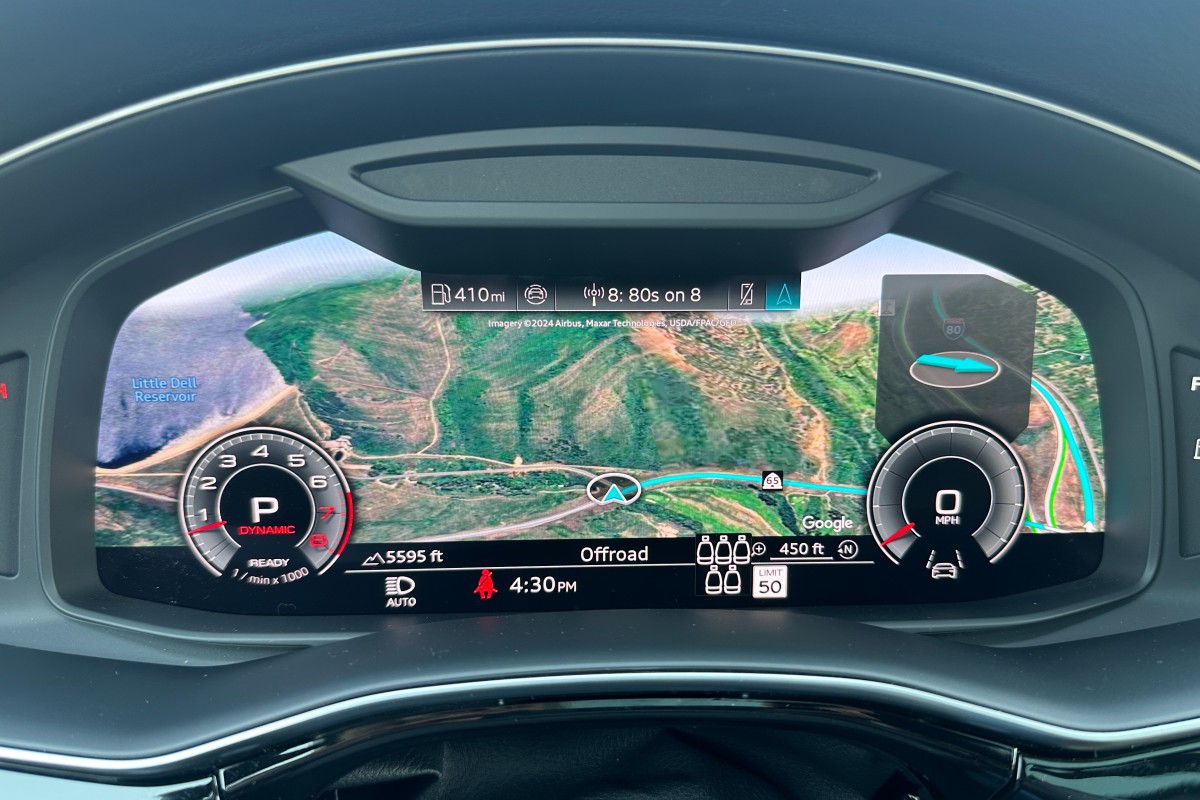 Speaking of navigation, Audi was one of the first to offer Google Maps as its native nav system, and it’s still a dream. Plus, it can be displayed over the entire gauge cluster in satellite view while wireless Apple CarPlay or Android Auto runs on the main screen. It’s the best.