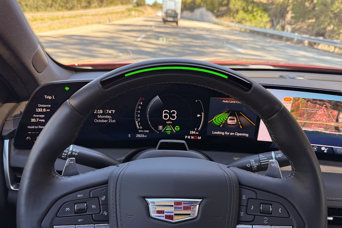 We used Super Cruise extensively on a road trip, and the technology is undeniably impressive and easy to trust. It works better away from cities, where its automatic lane-change function is more effective. However, when using Super Cruise in an urban area, it seemed more capable and less error-prone than earlier versions.