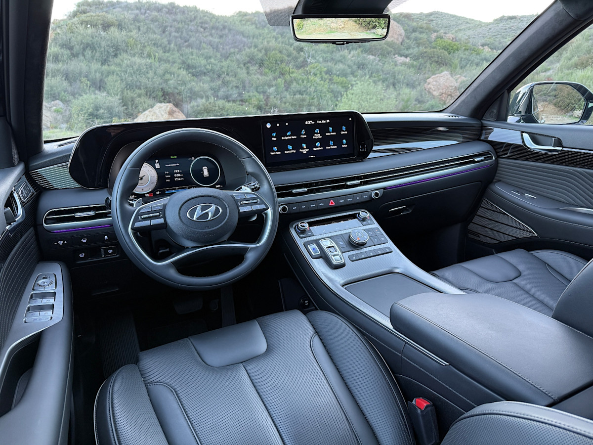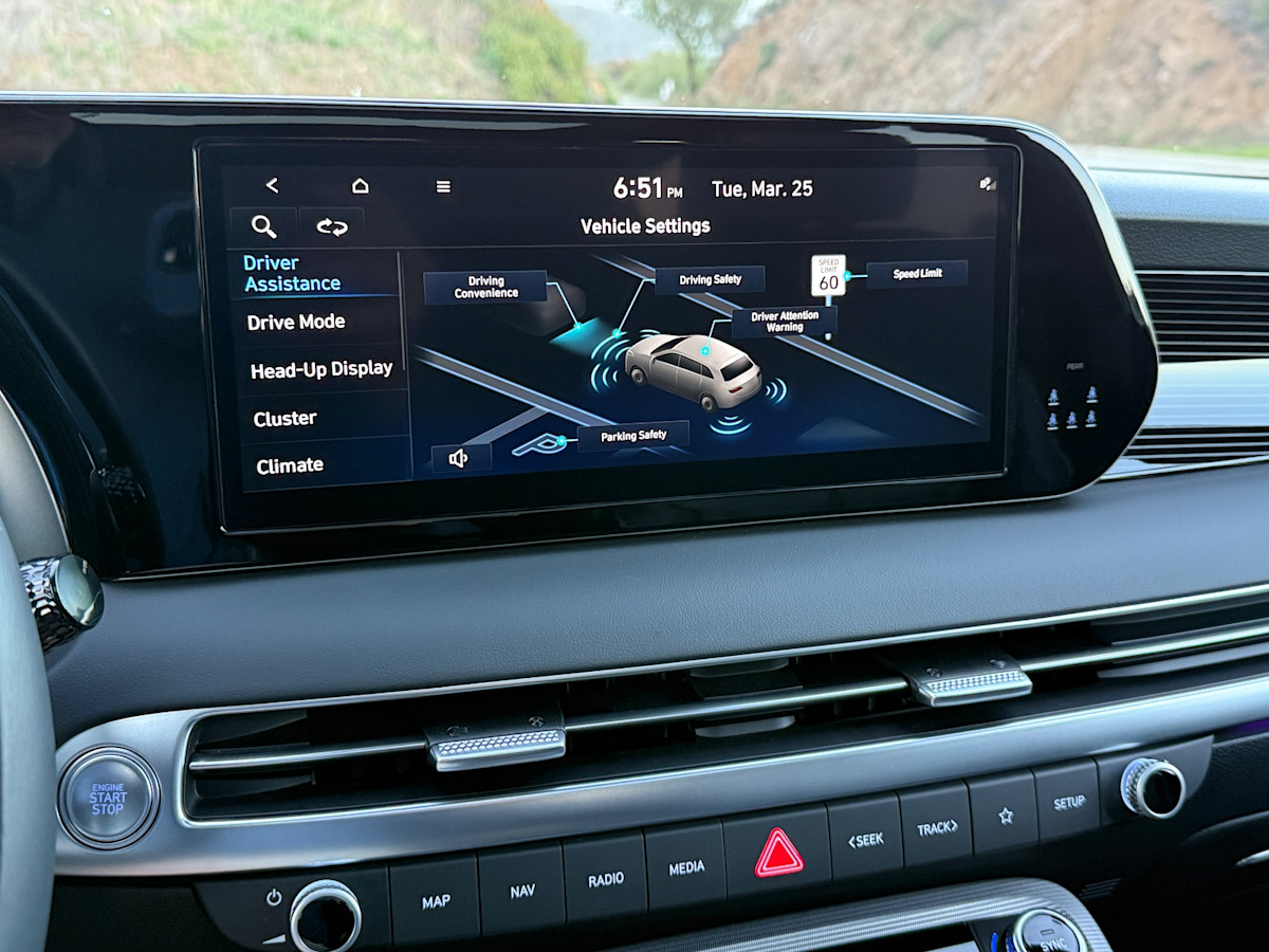 The technology in the Palisade is starting to look dated, but only if you’re familiar with the widescreen approach the company takes in its most recently introduced and redesigned models. Those cars, trucks, and SUVs have a single rectangular display housing the digital instrumentation and the infotainment system. In the Palisade, they’re separate, and the gauge screen is recessed instead of flush with the infotainment screen.